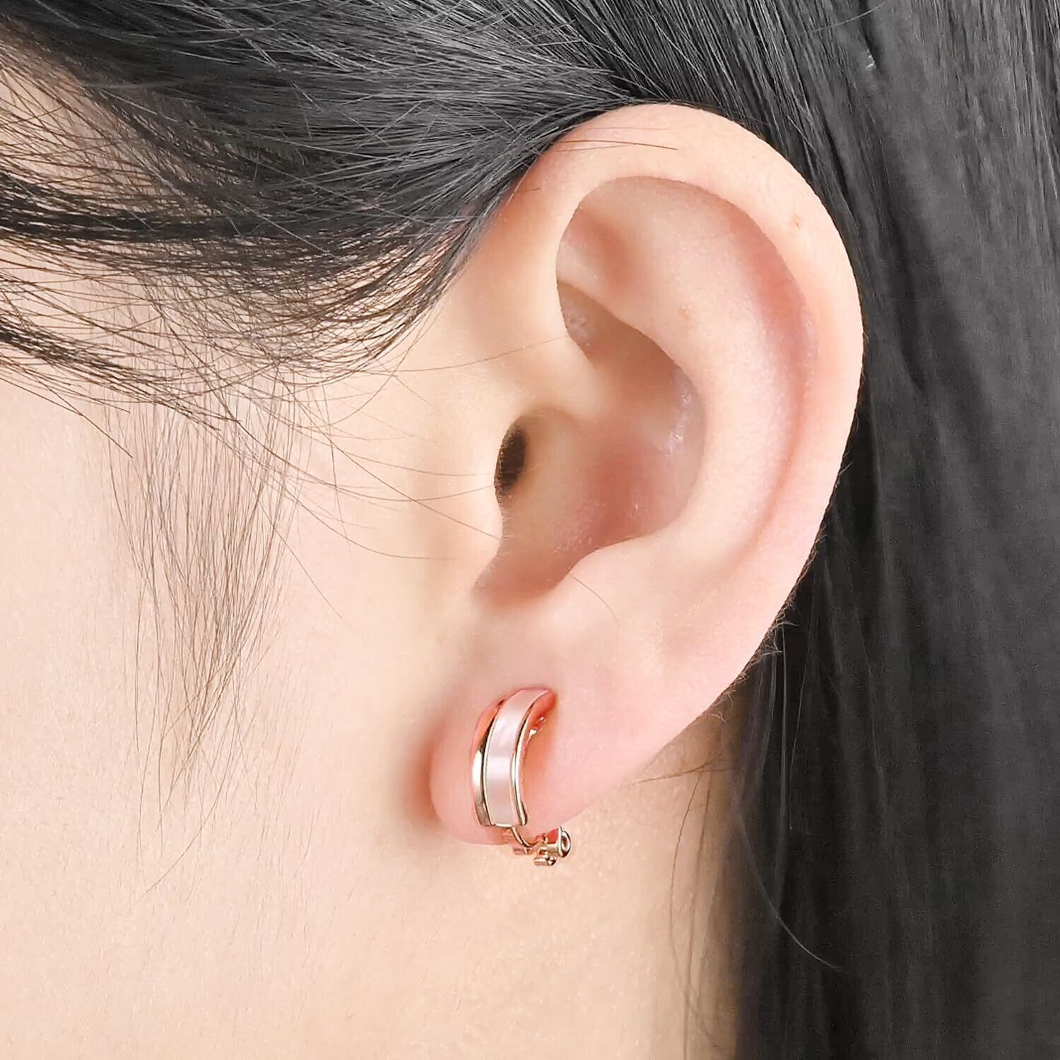 柔らかな光沢:白蝶貝をピンクゴールドカラーのカーブしたメタルにセットしたイヤリングは、シンプルでエレガントなデザイン。白蝶貝の光沢が光の加減で変化し、独特の深みとエレガンスを醸し出します。