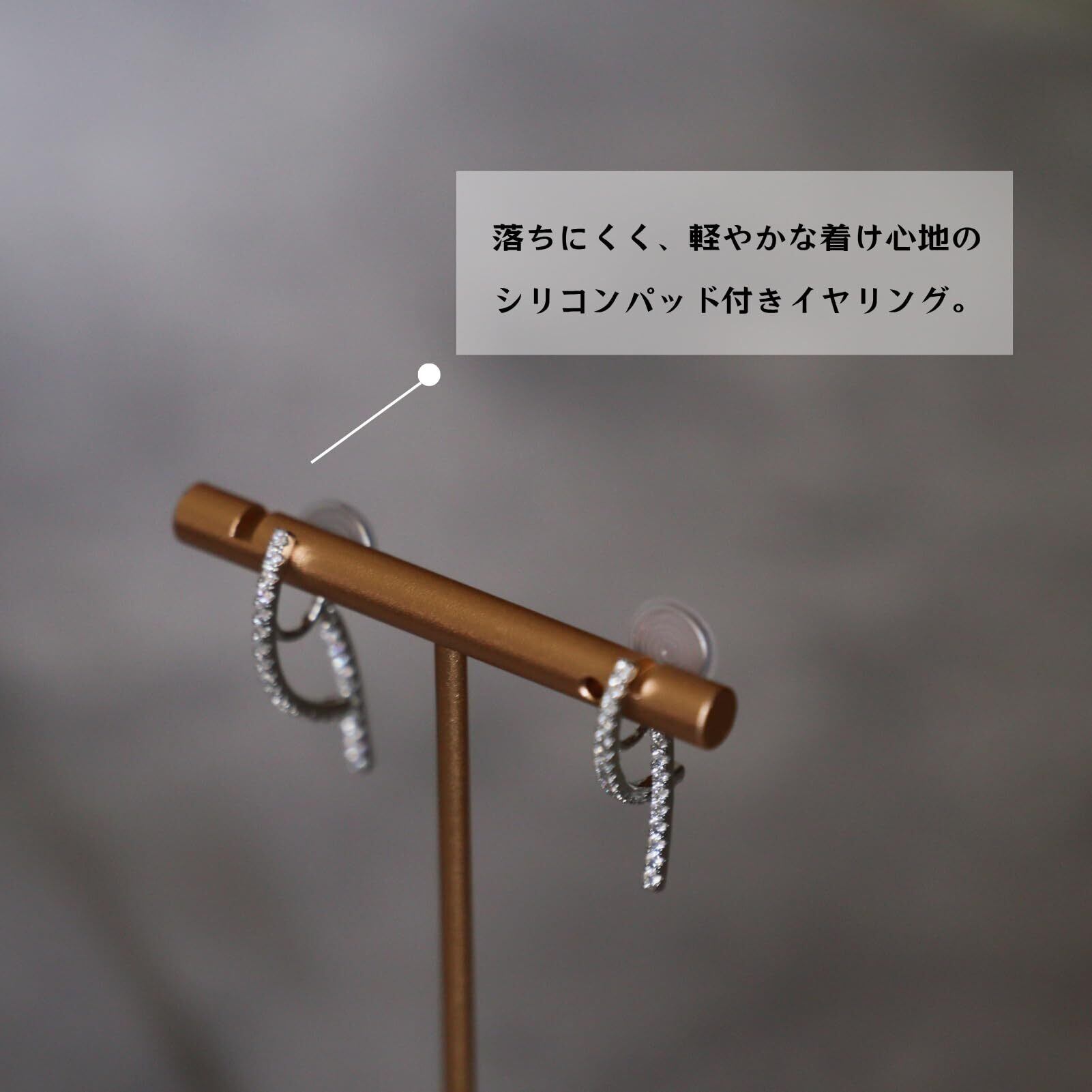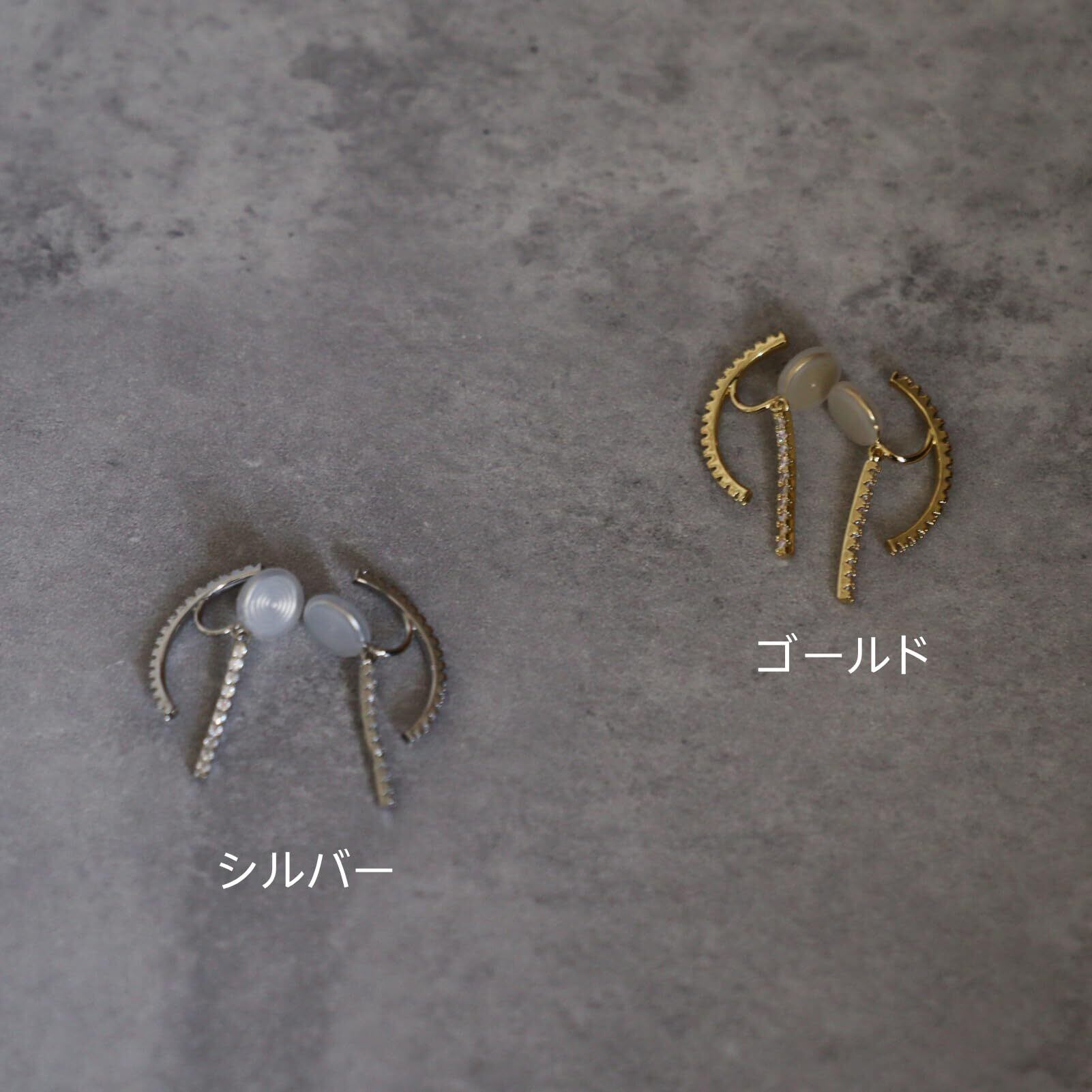 Moonstan イヤリング レディース 人気 ゴールド シルバー 金属アレルギー対応 ビジュー ライン 揺れる ワイヤーフィット 挟むだけ シリコンカバー 大人