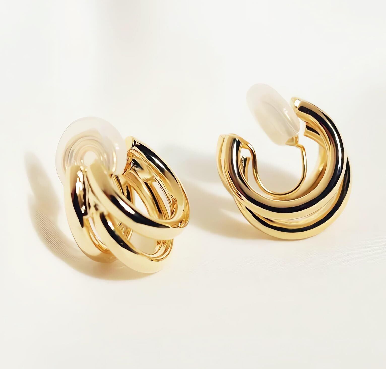 ONNFMH イヤリング ゴールド フープ ノンホールピアス レディース 人気 大きめ 金属アレルギー対応