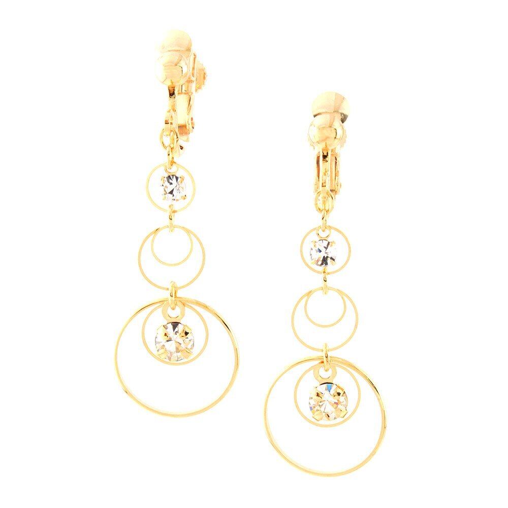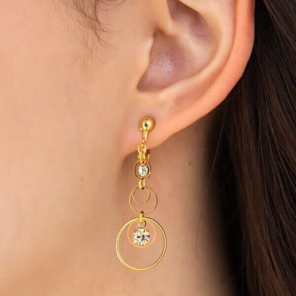 【耳元で煌めくアクセサリー】いろいろなサイズのリングにストーンを添えて、存在感のあるイヤリングに仕上げました。耳元で揺らめく女性らしいデザインです。