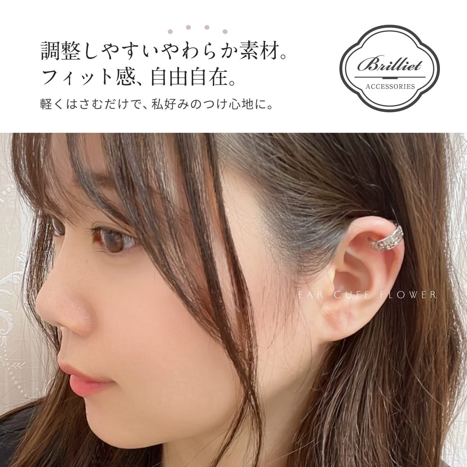 【調整可能・使いやすい】柔らかい素材を使用しているため、取り付け、取り外しの調整が便利です。お持ちのイヤリングやノンホールピアス、他のイヤカフと重ね付けいただければ、おしゃれ感 倍増です。
