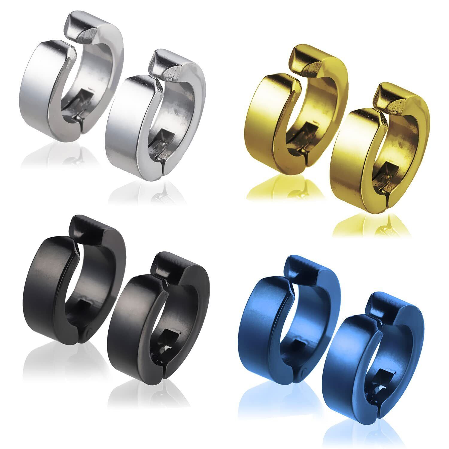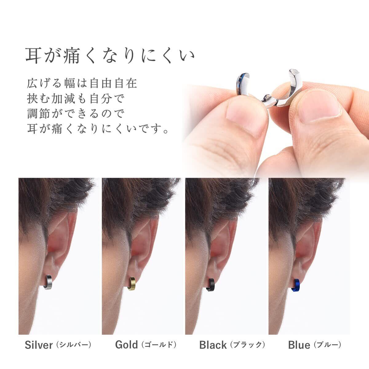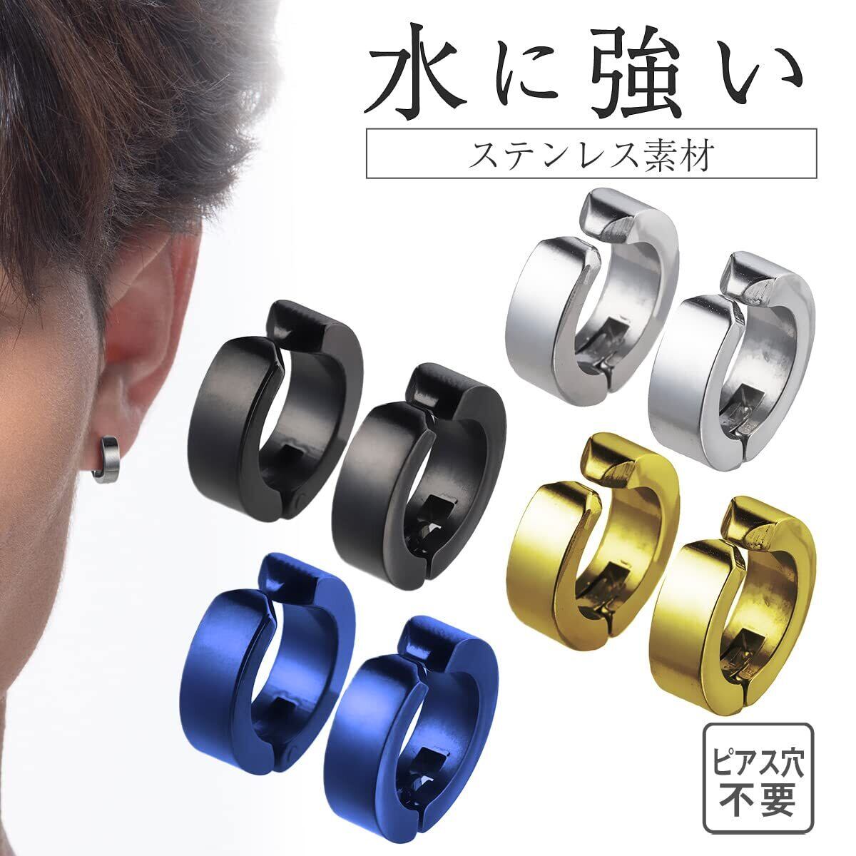 【2022最新】[Puente] フェイクピアス ステンレス メンズ レディース イヤリング イヤーカフ イヤカフ ピアス風 フープイヤリング 両耳セット シンプル フープ リング ノンホールピアス 太め 太い 9mm シルバー ゴールド ブラック ブルー | 無意味ステッカー