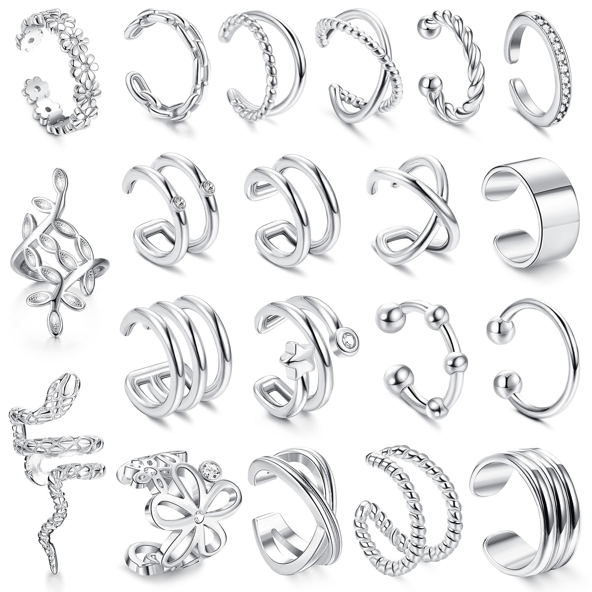 ️【女性用カフイヤリング ノンホールピアス】 1 回のご注文には、さまざまなスタイルのカフ イヤリング 20 個が含まれます。シルバー カフ イヤリング、ゴールド カフ イヤリング、ローズゴールド カフ イヤリング 3 色からお選びいただけます。 ノンピアスカフのデザインは通常、耳の軟骨に着用され、ピアスのある耳にもピアスのない耳にも適しており、さまざまなマッチング方法があり、よりファッショナブルなトレンドに導きます。