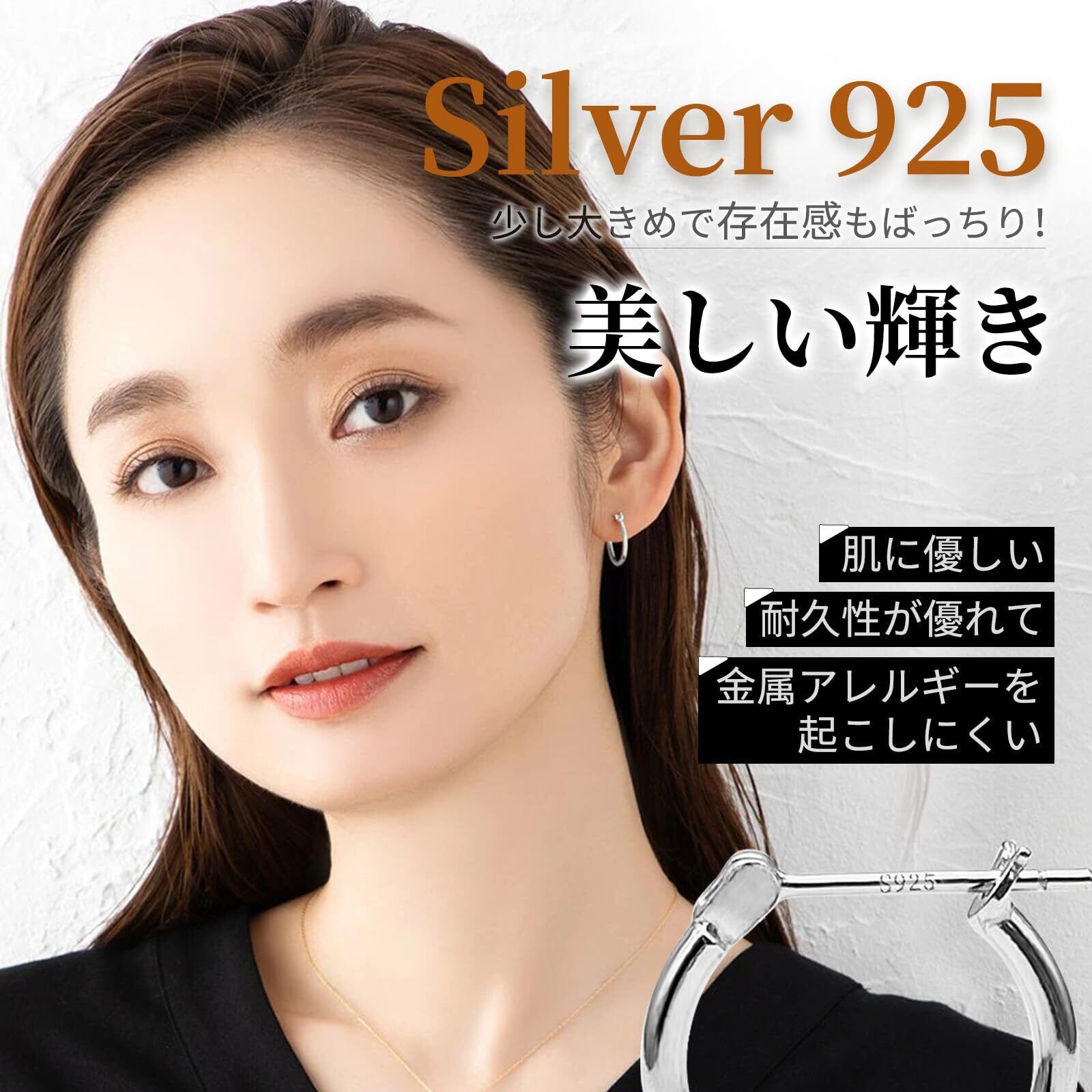 【素材:シルバー925】フープピアスにS925の刻印があります。シルバー925は銀の純度が92.5%なので、実は純銀として扱われており、肌に優しい、耐久性が優れている、金属アレルギーを起こしにくいシルバー925純銀素材なので、医療の現場でも使用されます。シルバー925の美しい輝きで貴方の魅力を最大限まで高めてくれます。