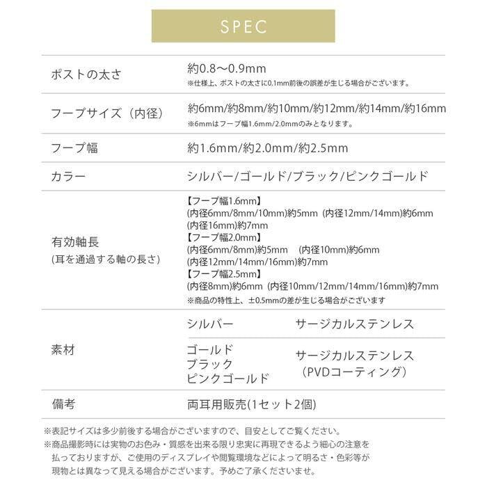 【素材】 シルバー:サージカルステンレス / ゴールド・ブラック・ピンクゴールド:サージカルステンレス(PVDコーティング)