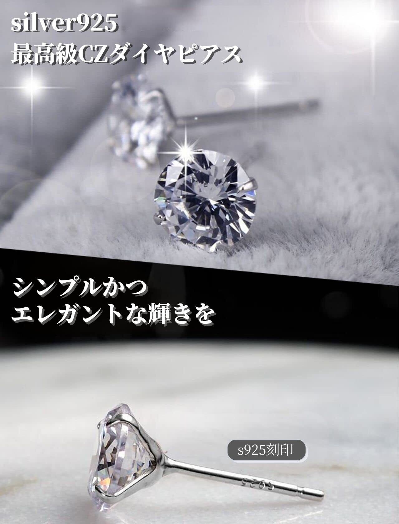 swars ピアス レディース 最高級ジルコニア シルバー925 メンズ 4本爪 一粒 金属アレルギー対応 スタッド 両耳
