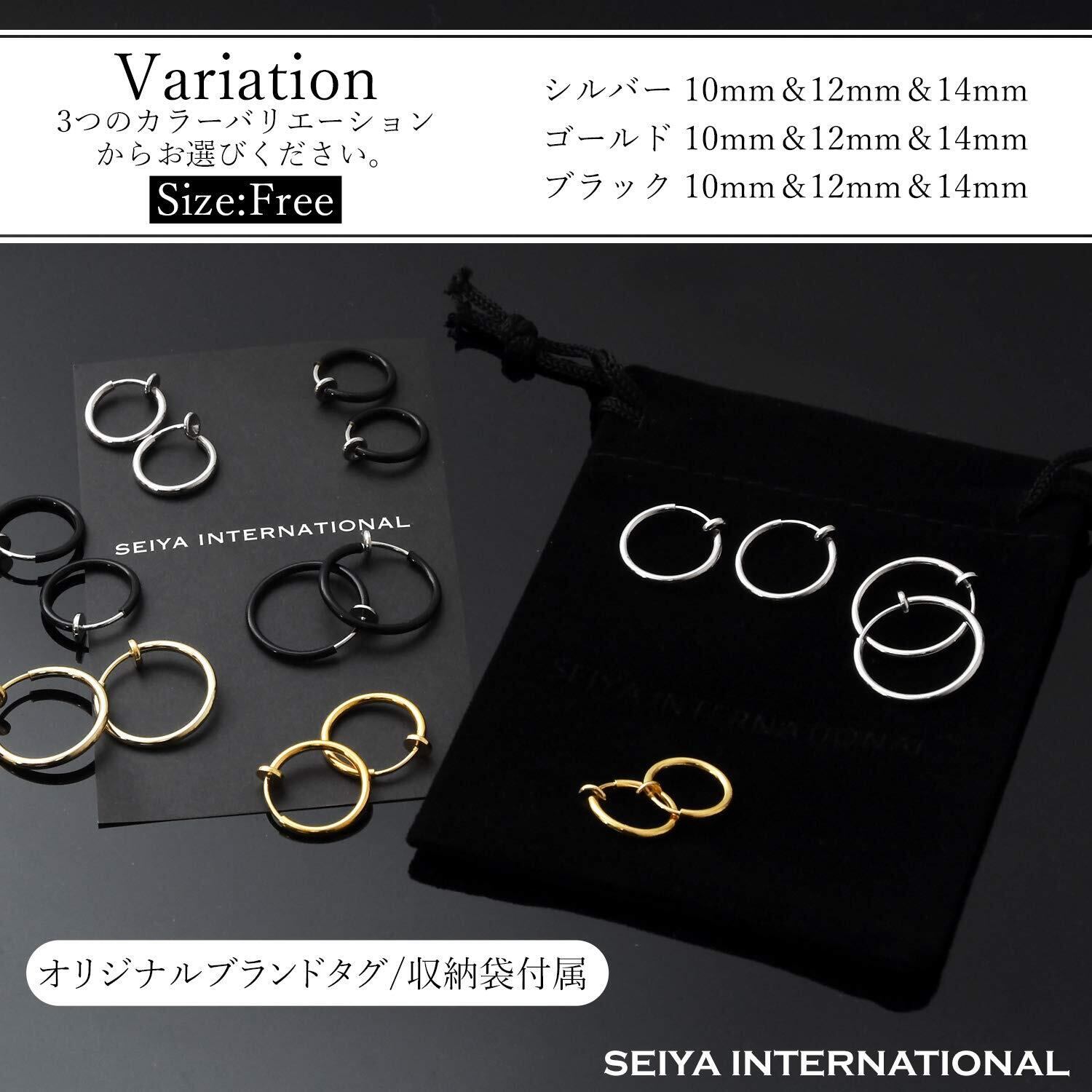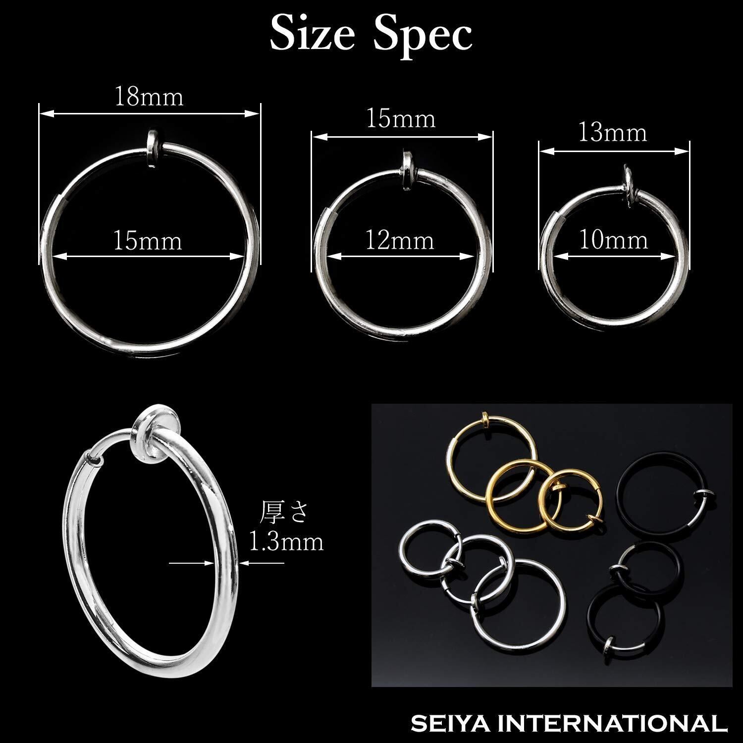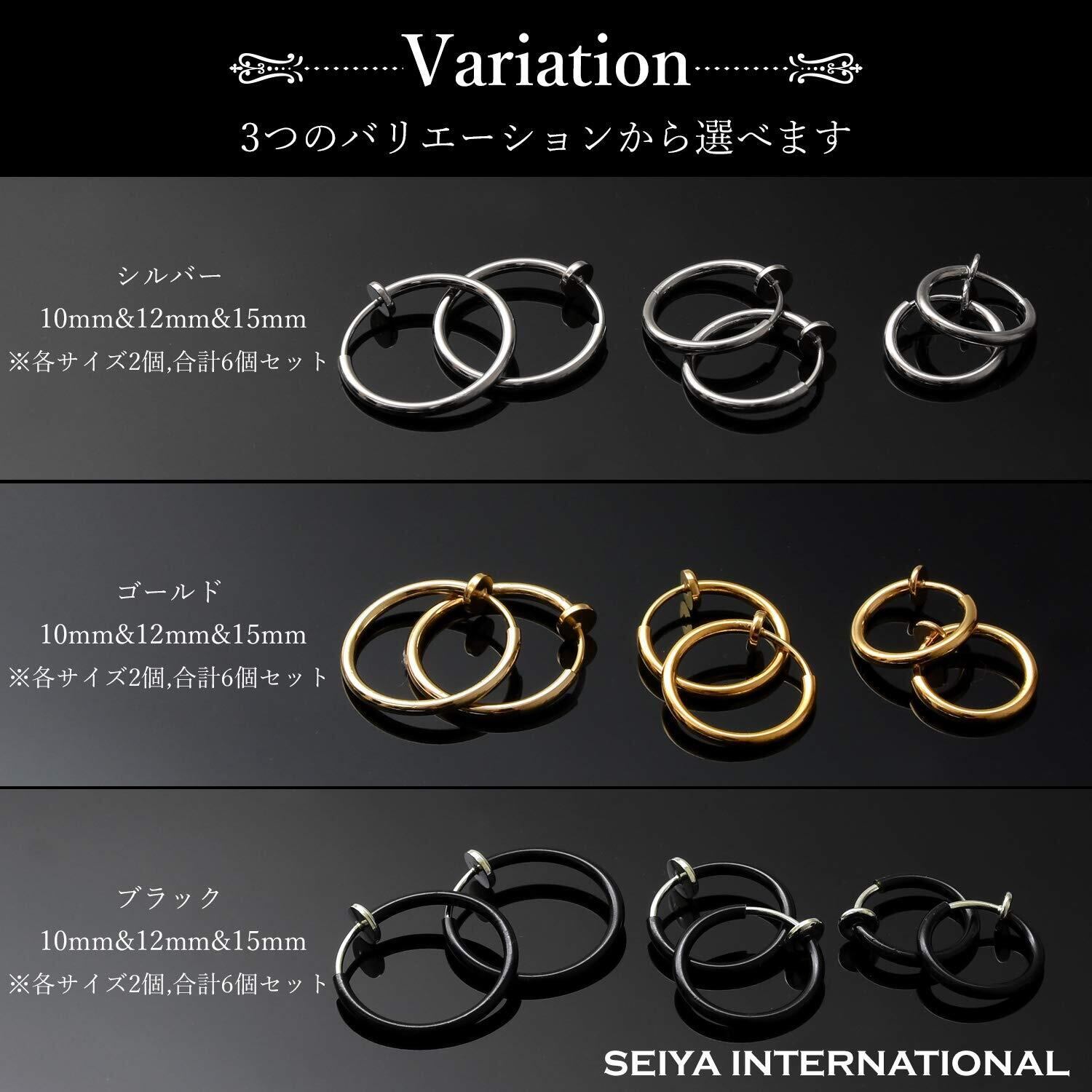 [セイヤインターナショナル] フェイクピアス メンズ レディース イヤリング ノンホールピアス イヤーカフ 穴なし リング フープ 両耳 3ペア 6個セット (シルバー)