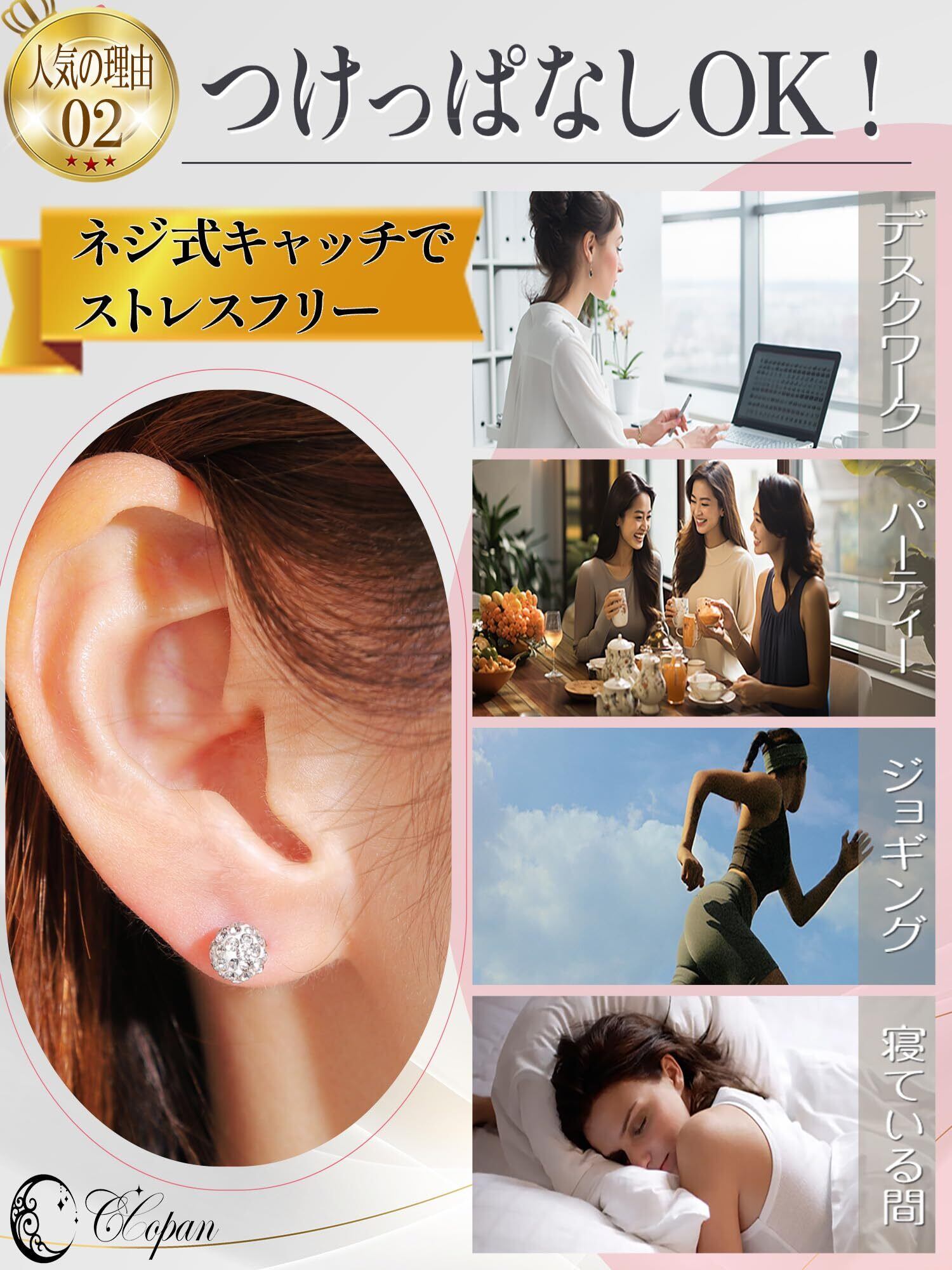 【ピアス つけっぱなし ファーストピアス】360度どこから見てもキラキラ つけっぱなしでも、ファーストピアスとして最適で、トラブルを未然に防ぎます。ネジ式のデザインにより落下の心配がなく、キャッチ部分が引っかからないため、日常生活でのストレスも軽減されます