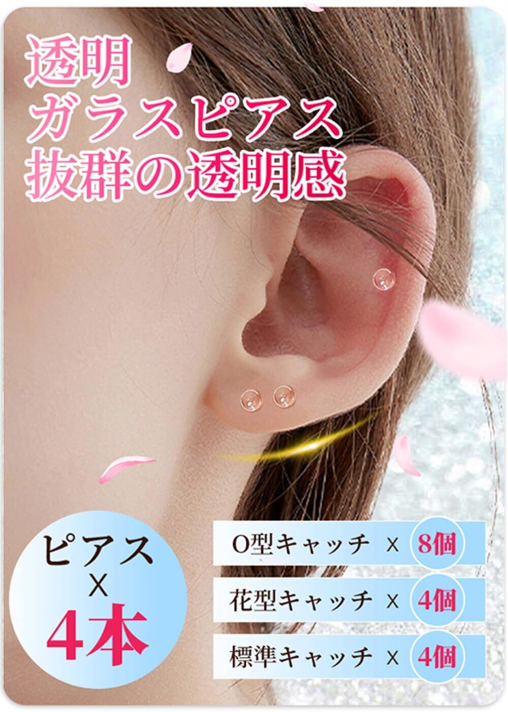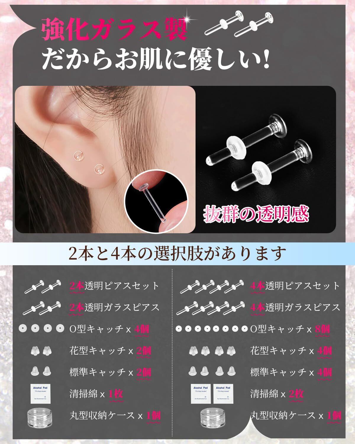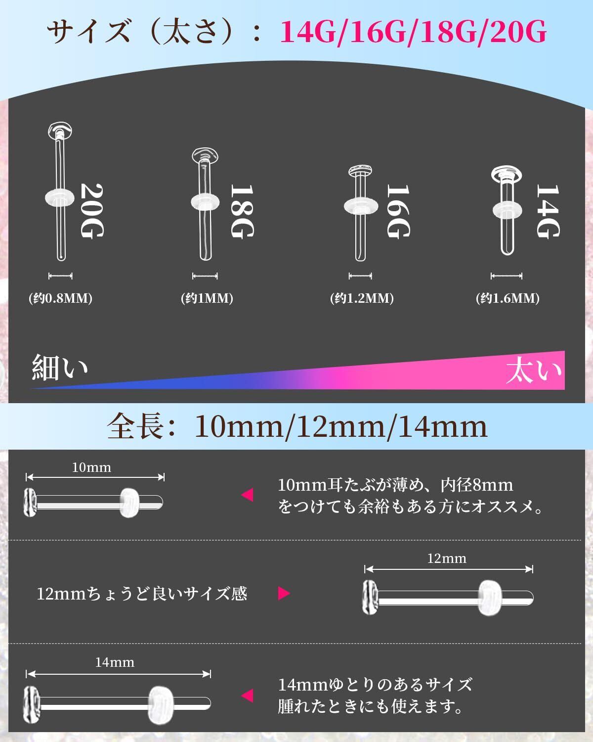[JHIFHG] 透明ピアス ガラス14G 16G 18G強化ガラス ボディ つけっぱなし 透明 クリア 金属アレルギー ガラスリテーナー クリア ファーストピアス シークレットピアス シンプル 目立たない 透ピ リテーナー 軟骨 耳たぶ
