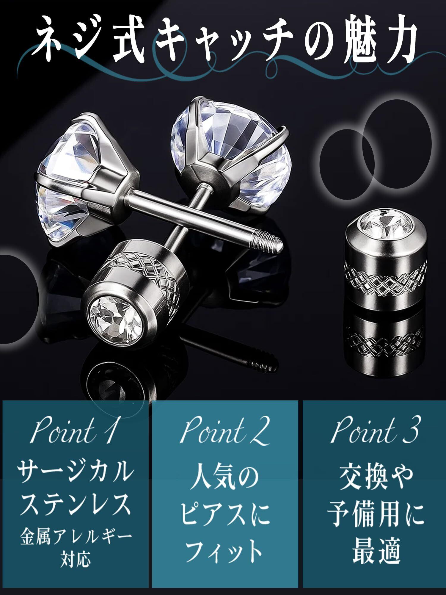 【ネジ式でしっかり固定】 ピアスのキャッチがすぐに外れてしまう…そんなお悩みを解決するねじ式デザイン。差し込むだけのキャッチと違い、しっかり締めることでピアスが落ちにくくなります。大切なピアスをなくさないための必需品として、普段使いにもおすすめです。