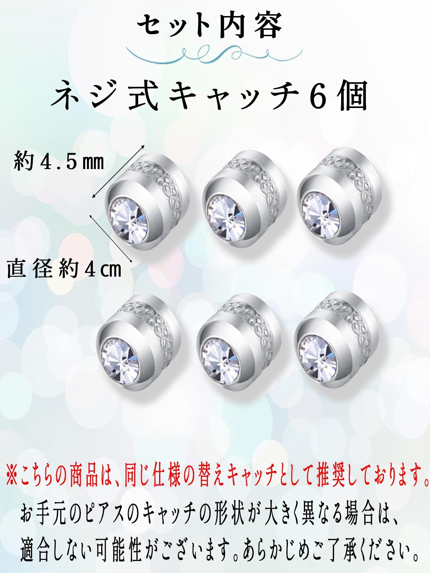 【落ちない 錆びない 取れない サージカルステンレス ピアス ねじ式キャッチ】 ※基本的にポストが20G(約0.8mm)のネジ式ピアスであれば装着可能ですが、メーカーによって微妙な違いがある場合があります。ご使用のピアスとの相性が合わない可能性もございますので、予めご了承ください。 金属アレルギー対応のサージカルステンレス製ネジ式キャッチ6個セット。サビに強く、水や汗にも負けない高品質素材を使用。敏感肌の方でも安心して使える、ネジ式でしっかり固定できるピアスキャッチです。お気に入りのピアスをしっかり支え、なくしにくい設計で長く愛用できます。