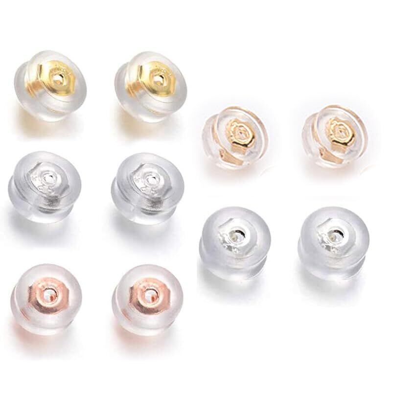 ピアス キャッチ シリコン 筒型 落ちない 10ペア(20個) 18金 K18メッキ 金属アレルギー レディース メンズ チャック袋付き イエローゴールド ホワイトゴールド ピンクゴール ドシルバー QYHH022 (白k金)
