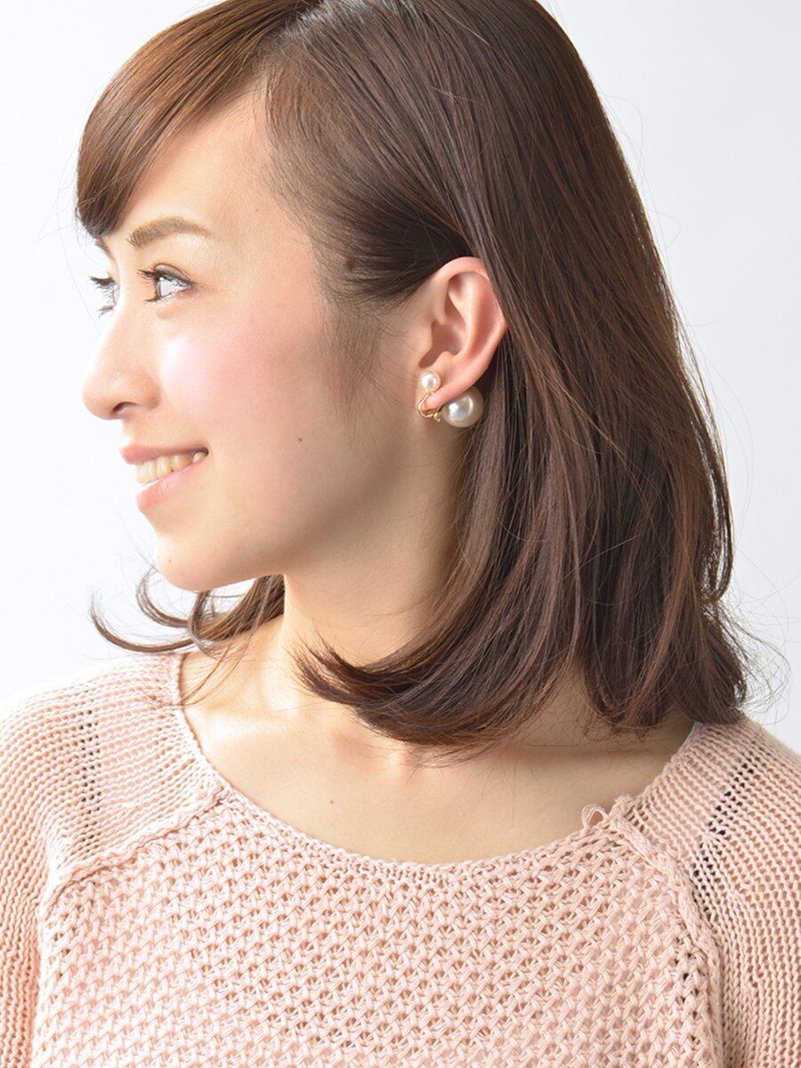 [ヴァンテーヌ] VINGTAINE パール バックキャッチ イヤリング リバーシブル 2way ダブルパール デザインキャッチ トライバルボール E2037-S シルバー色