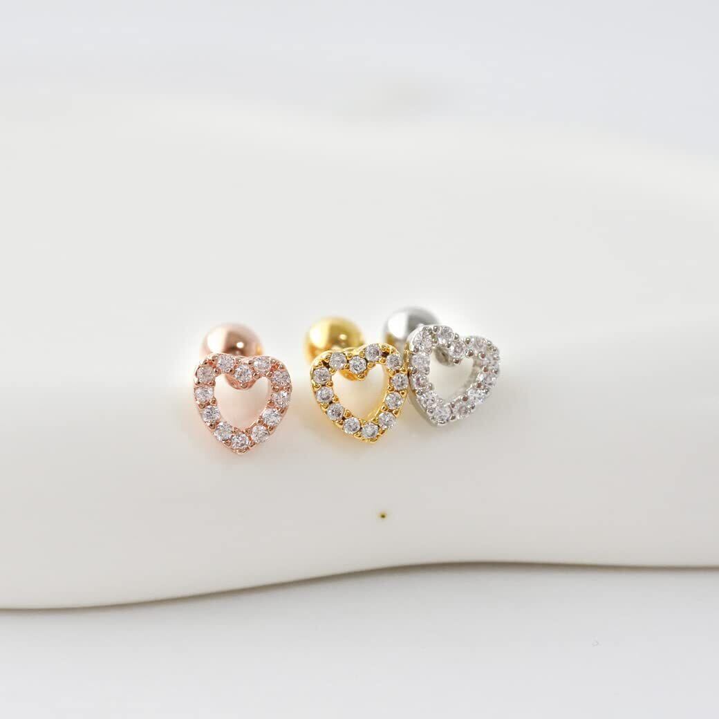 [スパイシーリップス] 14G 16G オープンハート heart キュービックジルコニア ミニ 軟骨ピアス ヘリックス ボディピアス ゲージ 0916