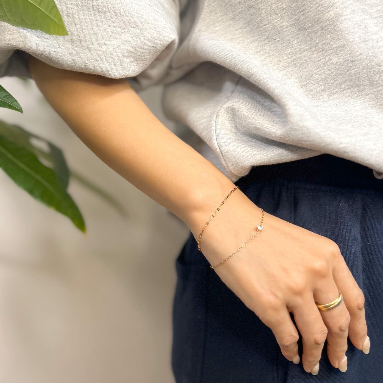 【デザイン】華やかな2連チェーン、華奢な1連チェーン、いずれも存在感がありキレイで上品なブレスレット。 シンプルで着用しやすく、派手過ぎず、地味過ぎない、ちょうど良い存在感が魅力です。普段使いにも大切な日にも大活躍すること間違いないしの人気のブレスレットです。