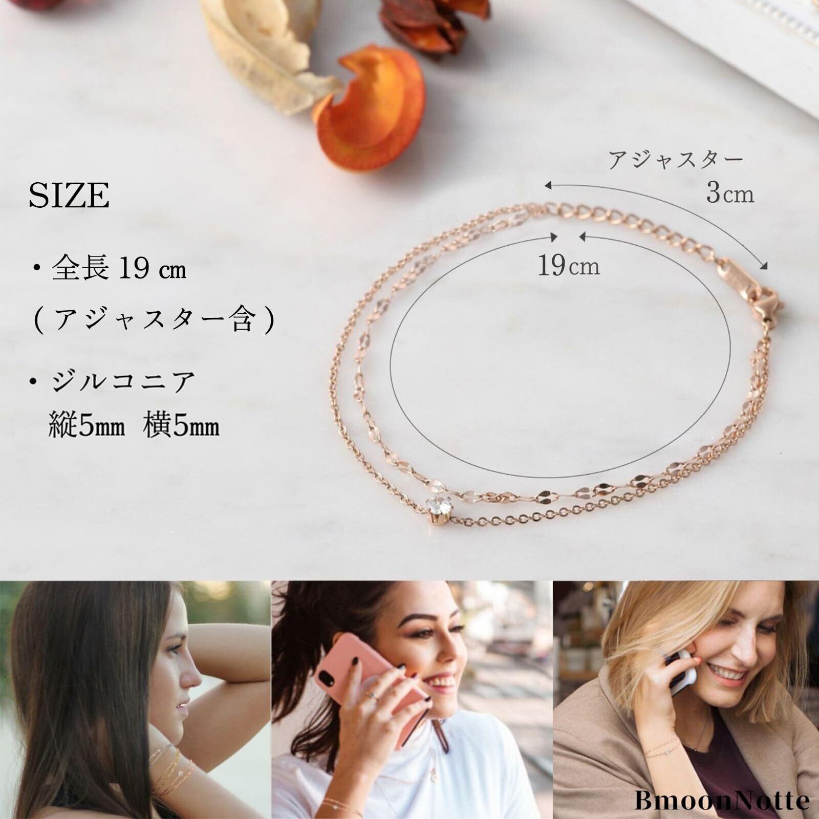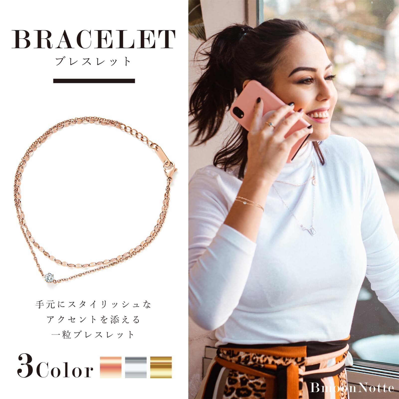 BmoonNotte ブレスレット レディース ピンクゴールド ステンレス シンプル 二連 金属アレルギー対応 【メーカー30日保証付き】