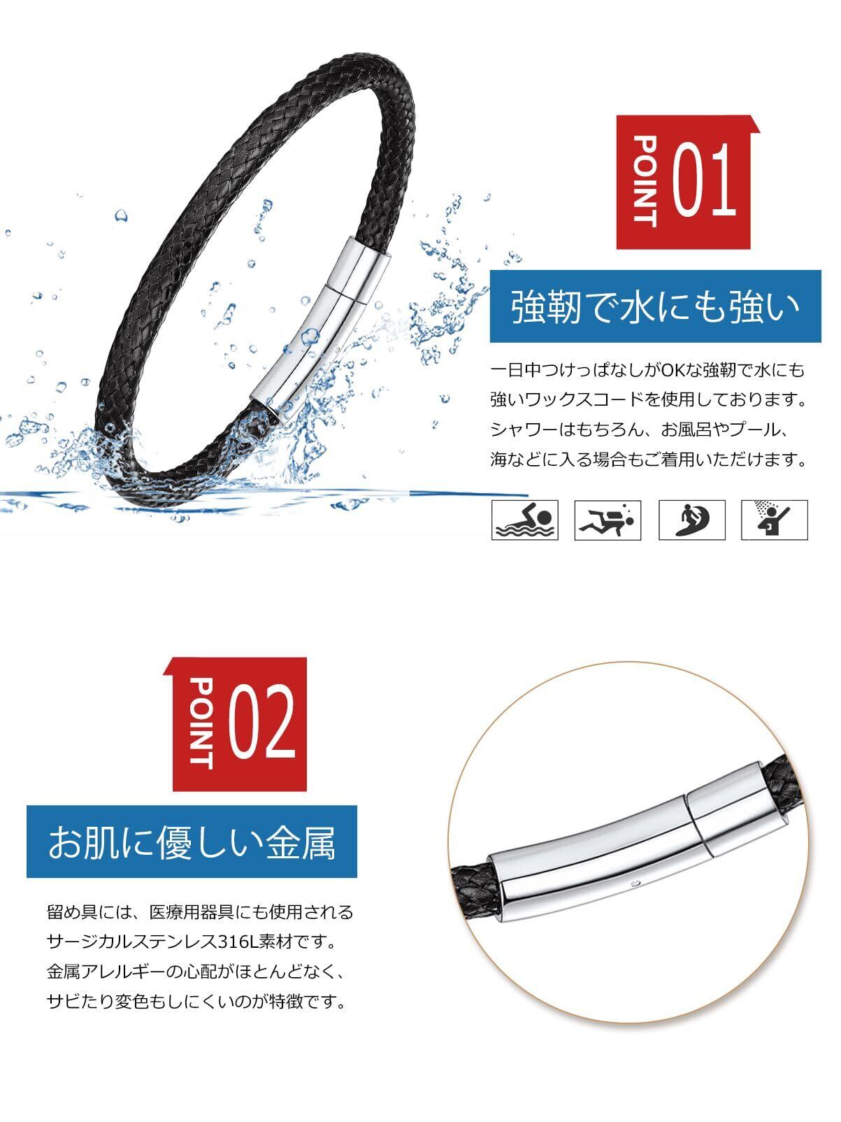 [つけっぱなしがOK] 強靭で水にも強いワックスコードを使用しております。シャワーはもちろん、お風呂やプール、海などに入る場合もご着用いただけます。