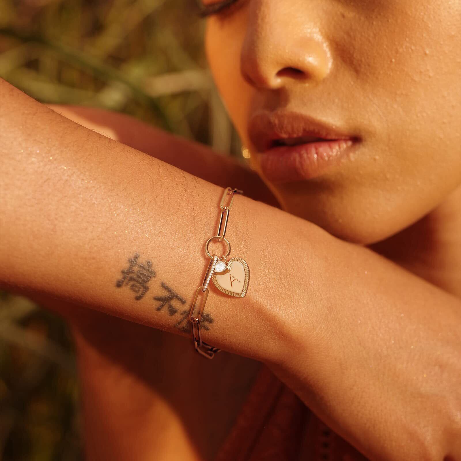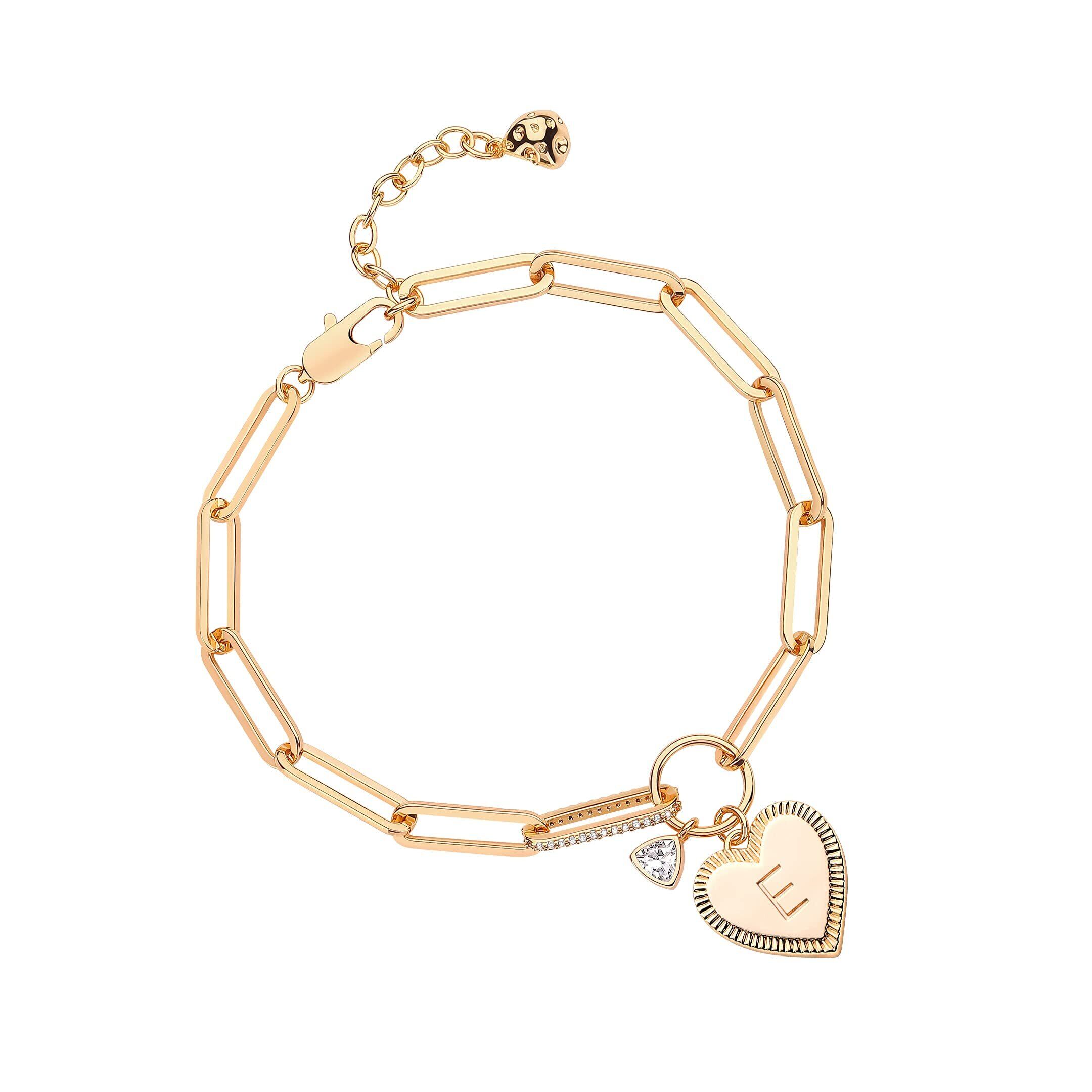 FETTERO ブレスレット レディース 14Kゴールド ハート型 A~Z 二層 腕輪 誕生日プレゼント女性 人気