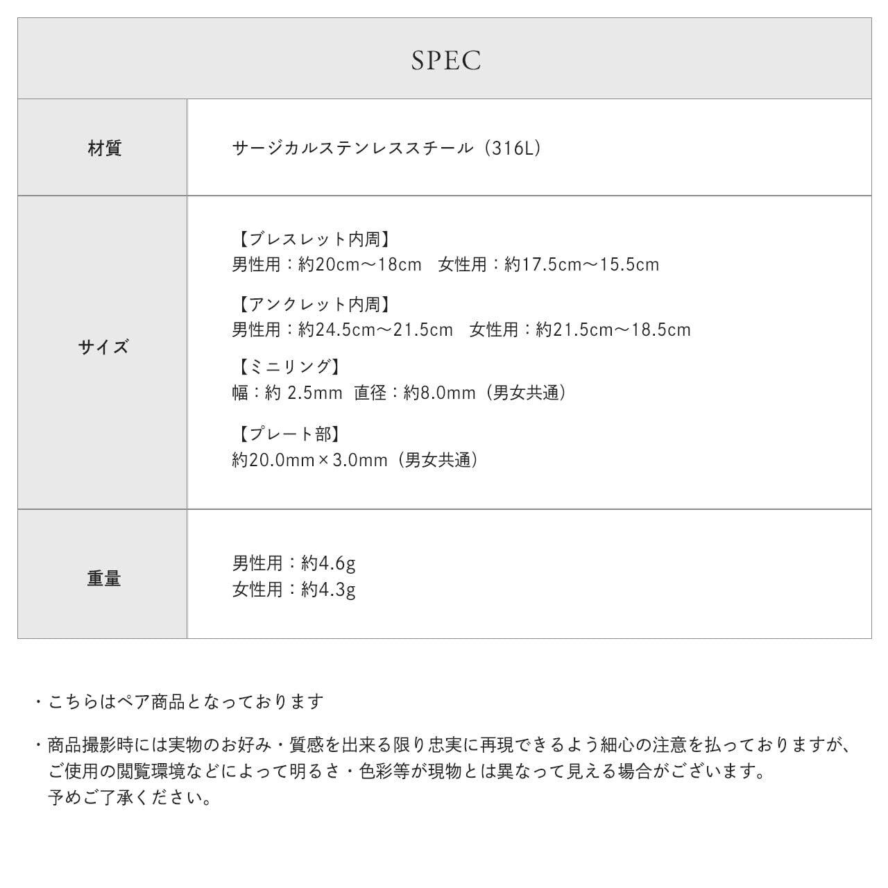 【重量】シルバー:男性用 約4.6g/女性用 約4.3g ゴールド:男性用 約4.9g/女性用 約4.5g