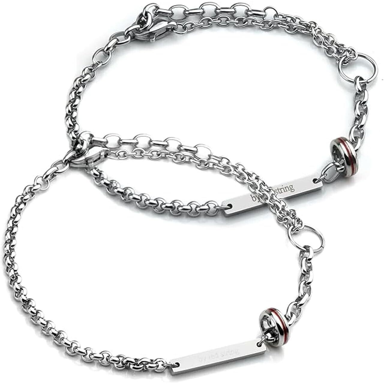 【2022最新】ペアブレスレット ペアアンクレット カップル ステンレス つけっぱなし 本物の赤い糸 お揃い 大人 シルバー メンズ レディース 金属アレルギー対応 ブランド シンプル ギフト プレゼント 2way | 無意味ステッカー