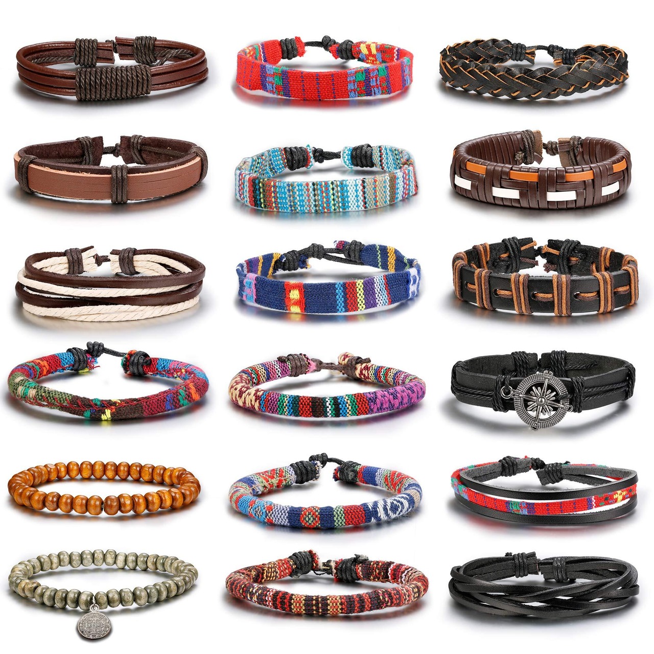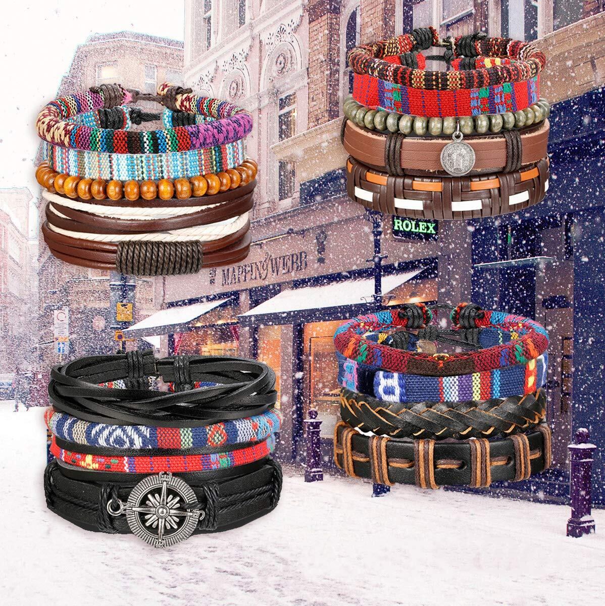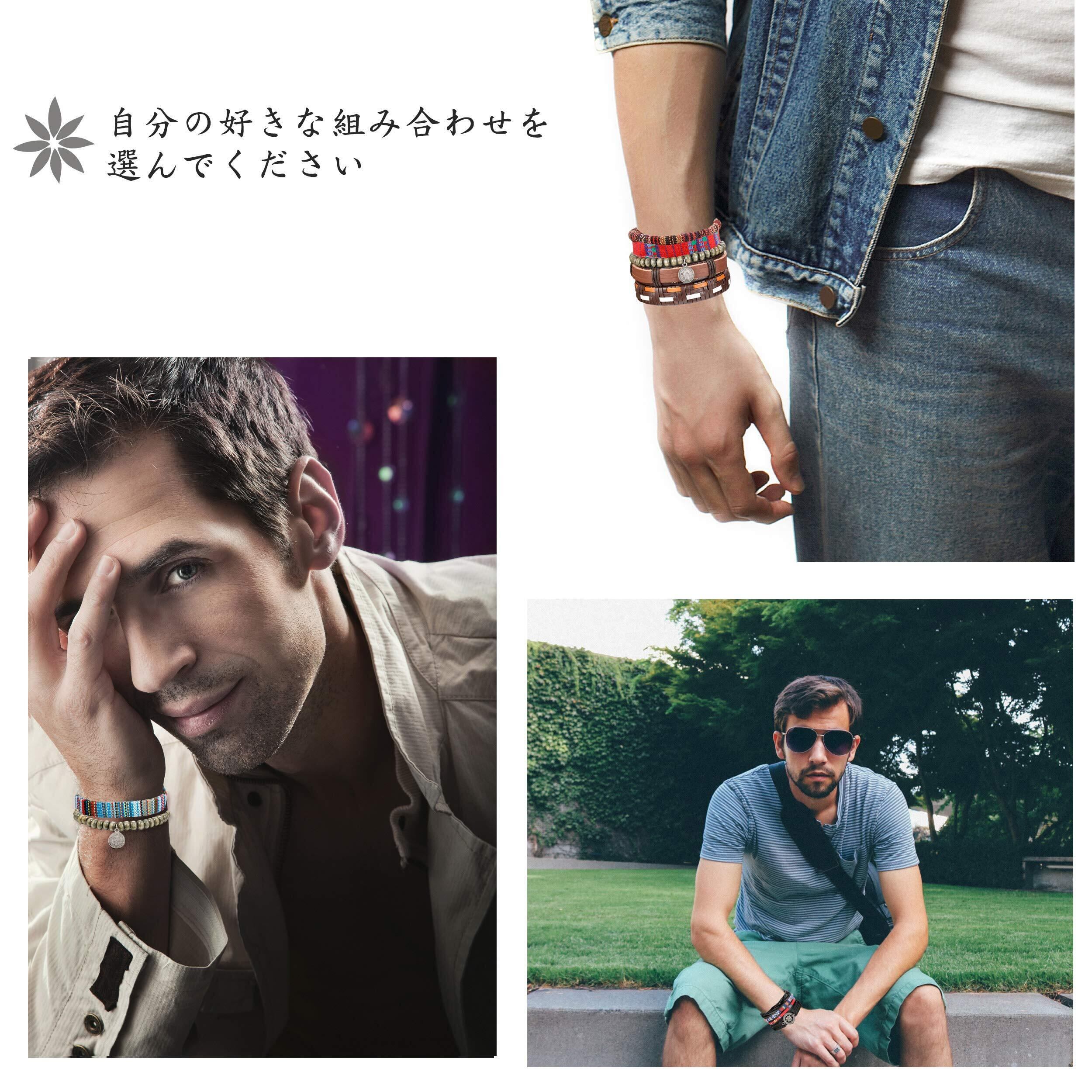 Gelmushta 18本セット レザー ブレスレット メンズ レディース 重ね着け ボヘミア風 人気 腕輪 ロープ 長さ調節可能 セット売り
