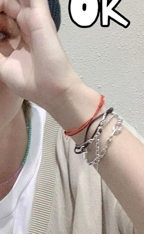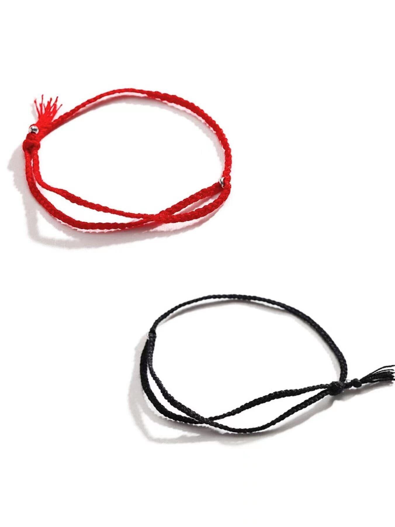 【特価商品】[AREUM] ブレスレット 紐 2本セット テテ着用モチーフ BTSスタイル ブラック&レッド ベージュ&グリーン 赤黒 韓国ファッション V 調整可能 ミサンガ 紐ブレス | 無意味ステッカー