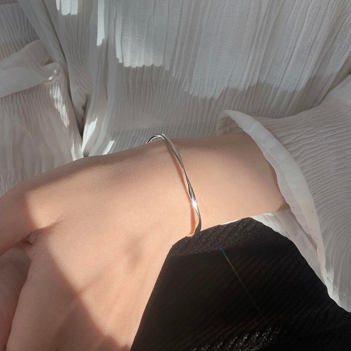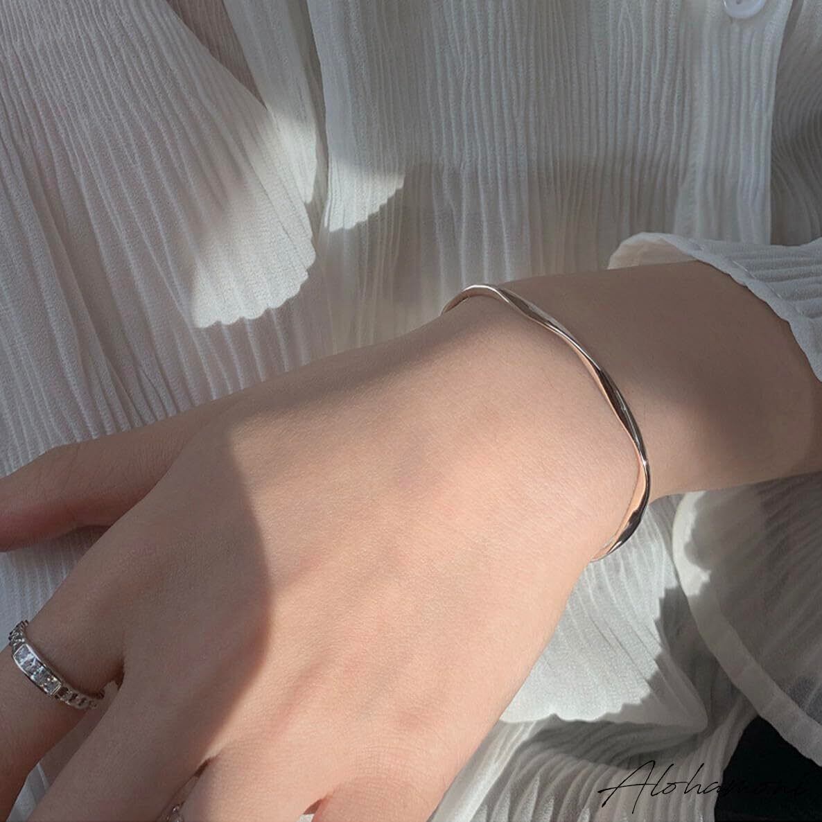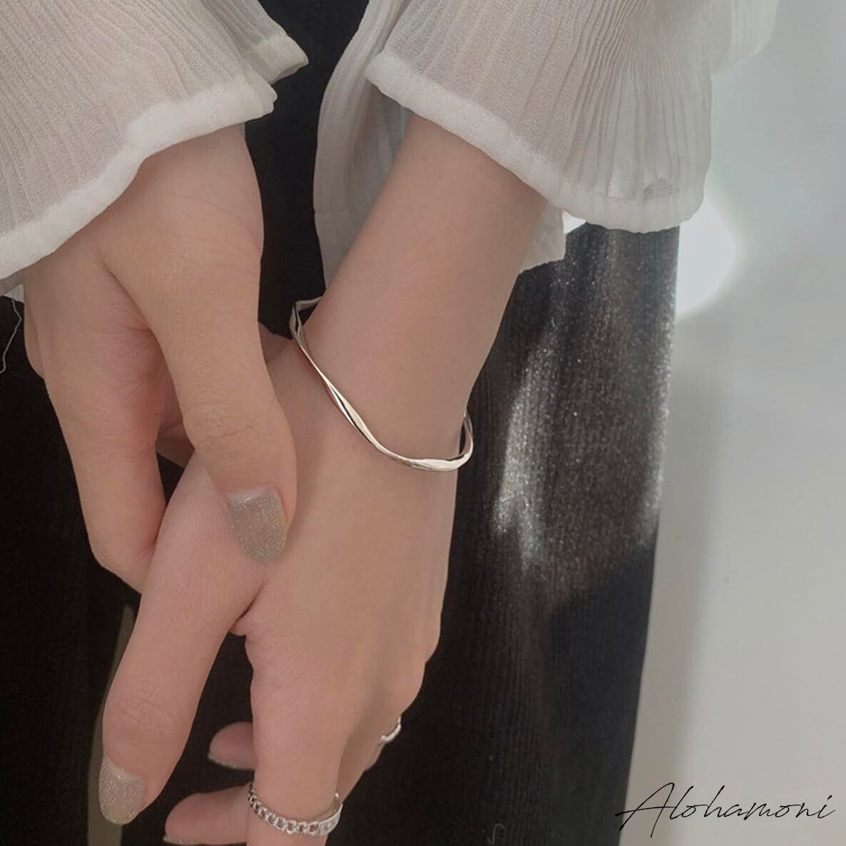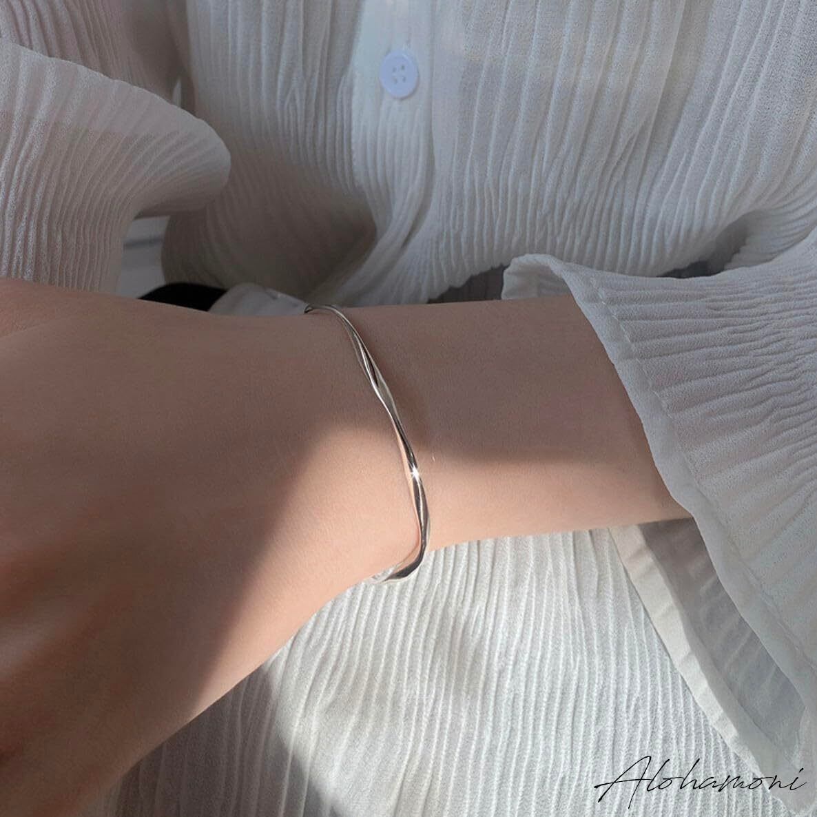 [ALOHAMONI] ウェーブバングル ブレスレット ツイスト ウェーブ うねり 細め ライン シンプル シルバー 付け外し 簡単 シルバー925 レディース 韓国 オルチャン