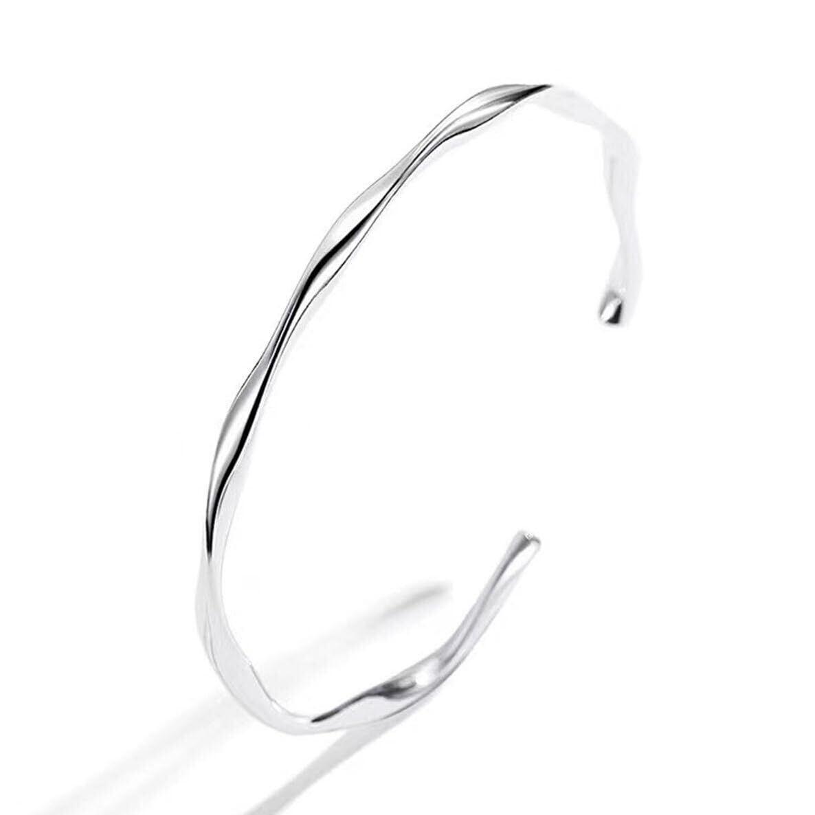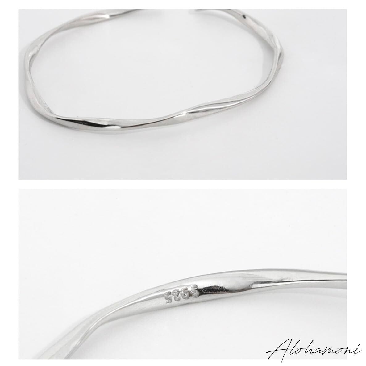 【在庫処分】[ALOHAMONI] ウェーブバングル ブレスレット ツイスト ウェーブ うねり 細め ライン シンプル シルバー 付け外し 簡単 シルバー925 レディース 韓国 オルチャン | 無意味ステッカー