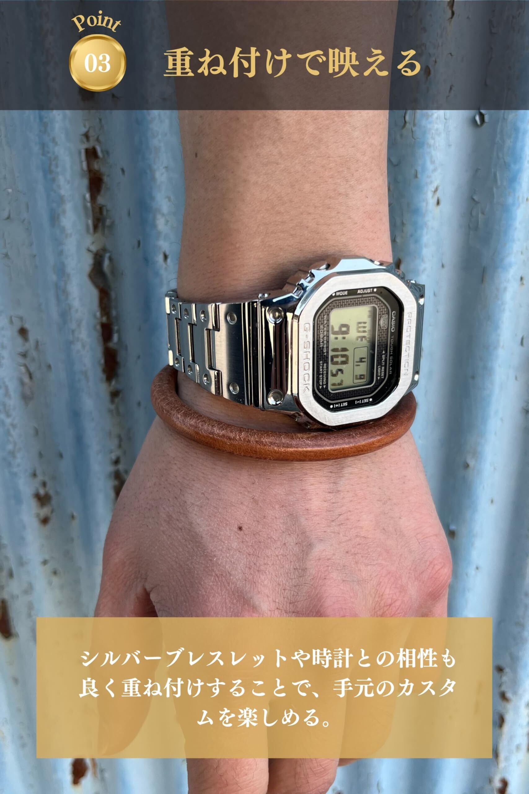 【商品特徴】本革素材のバングルです。シルバーブレスレットなどとの重ね付けもおすすめです。