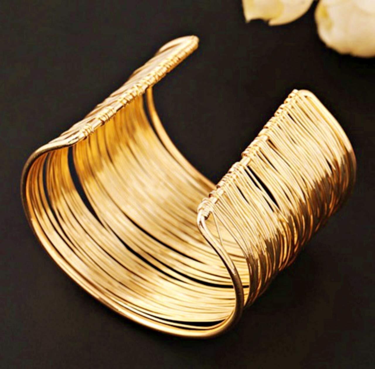 シンプルな中にも自然な上品さがにじみ出るレディース用ゴールド色バングルのご紹介です。