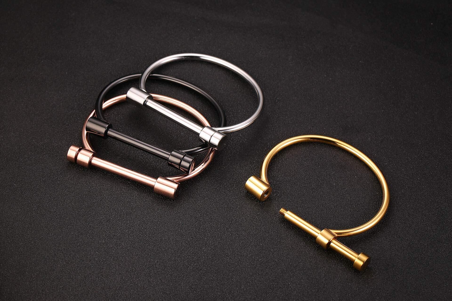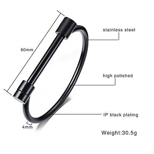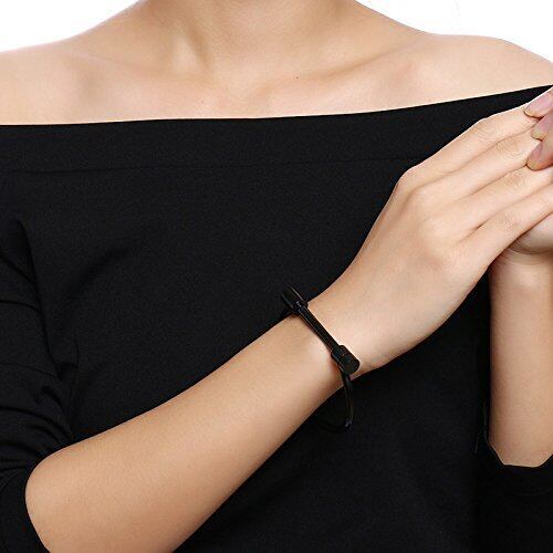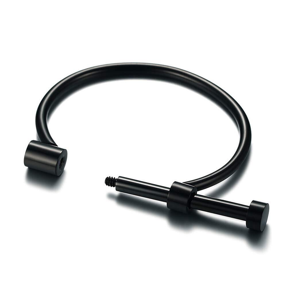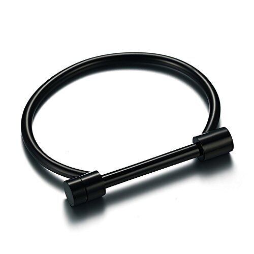 Rockyu ジュエリー ブランド 人気 ブレスレット バングル レディース ステンレス ブラック シンプル 手錠 (ブラック)