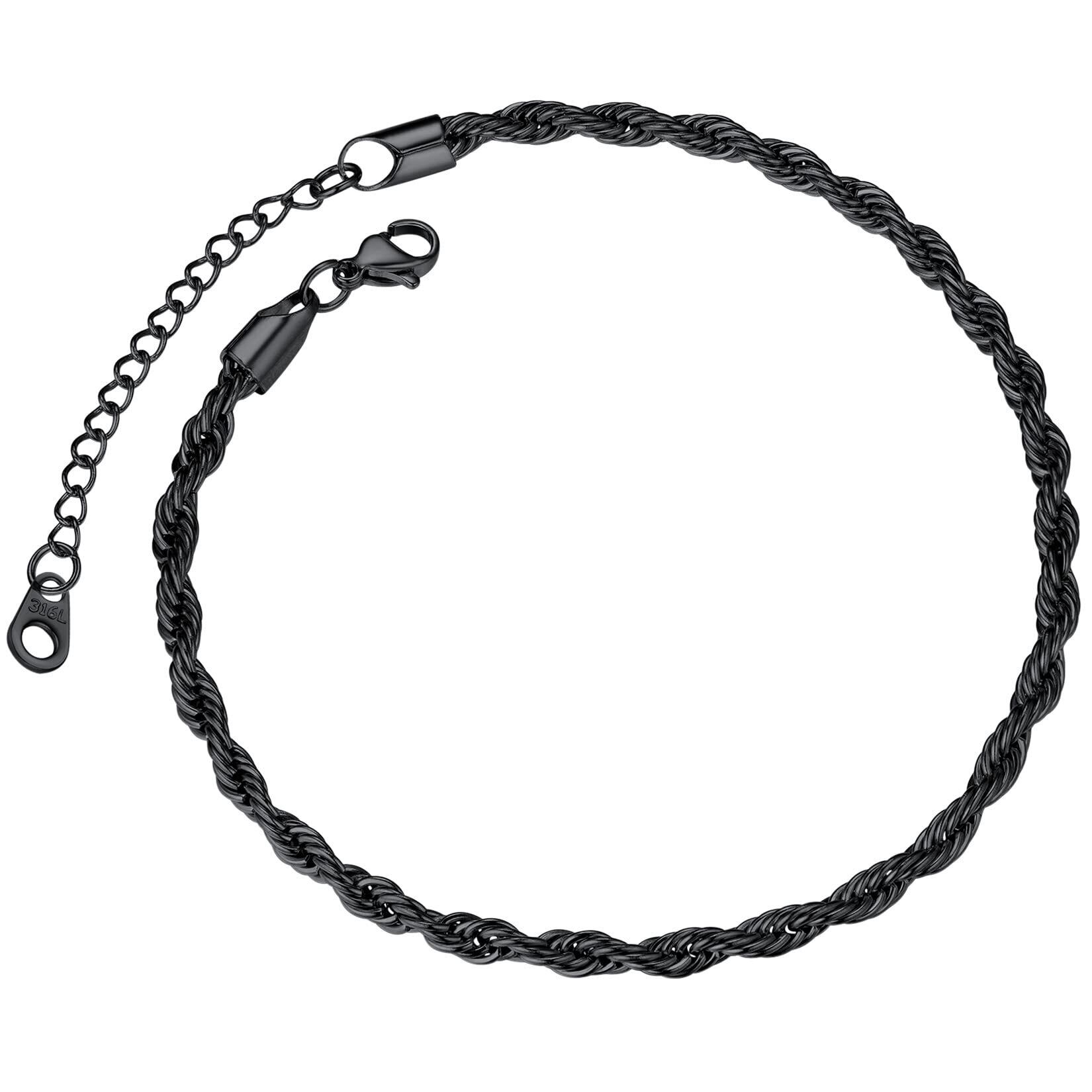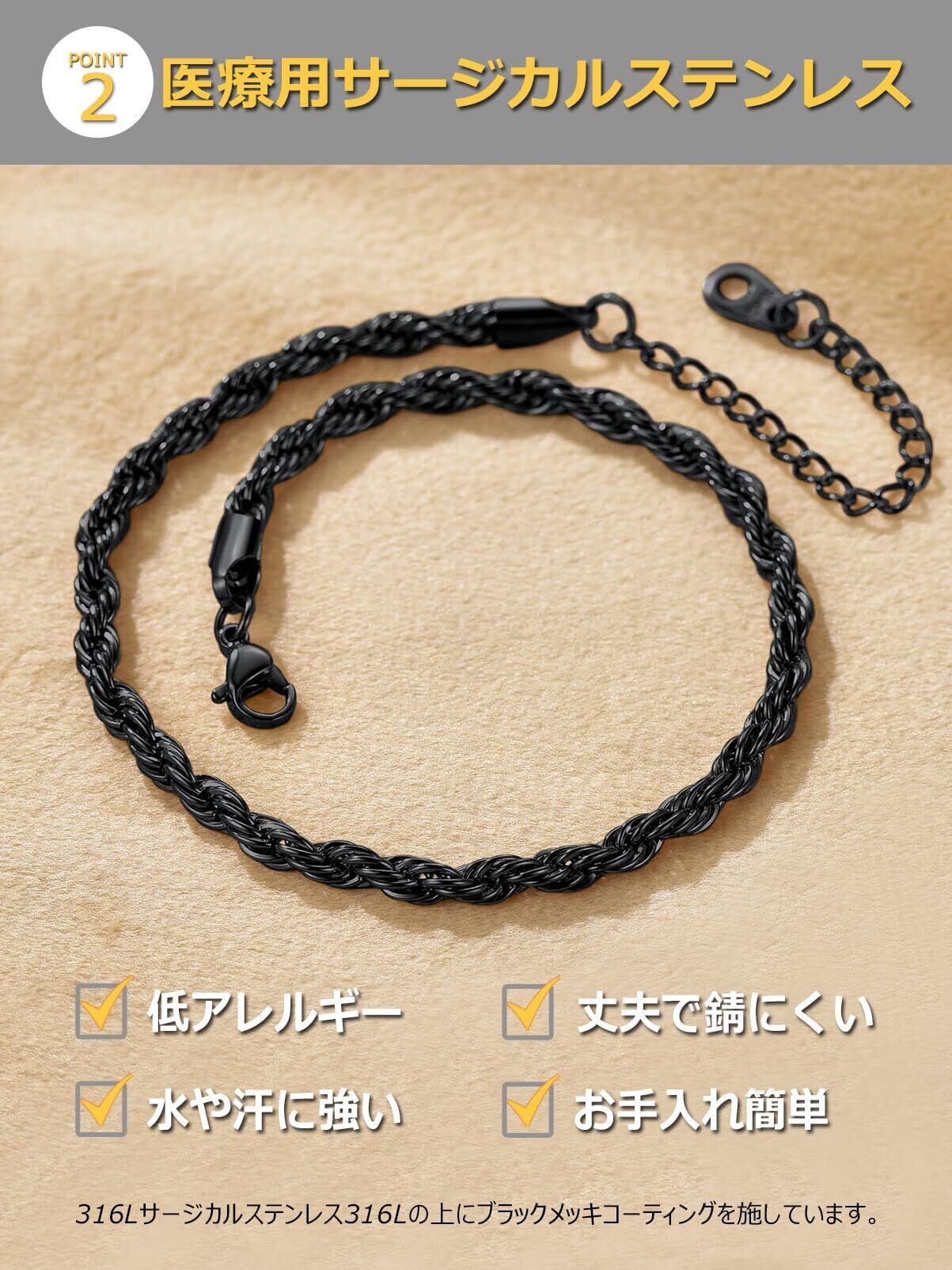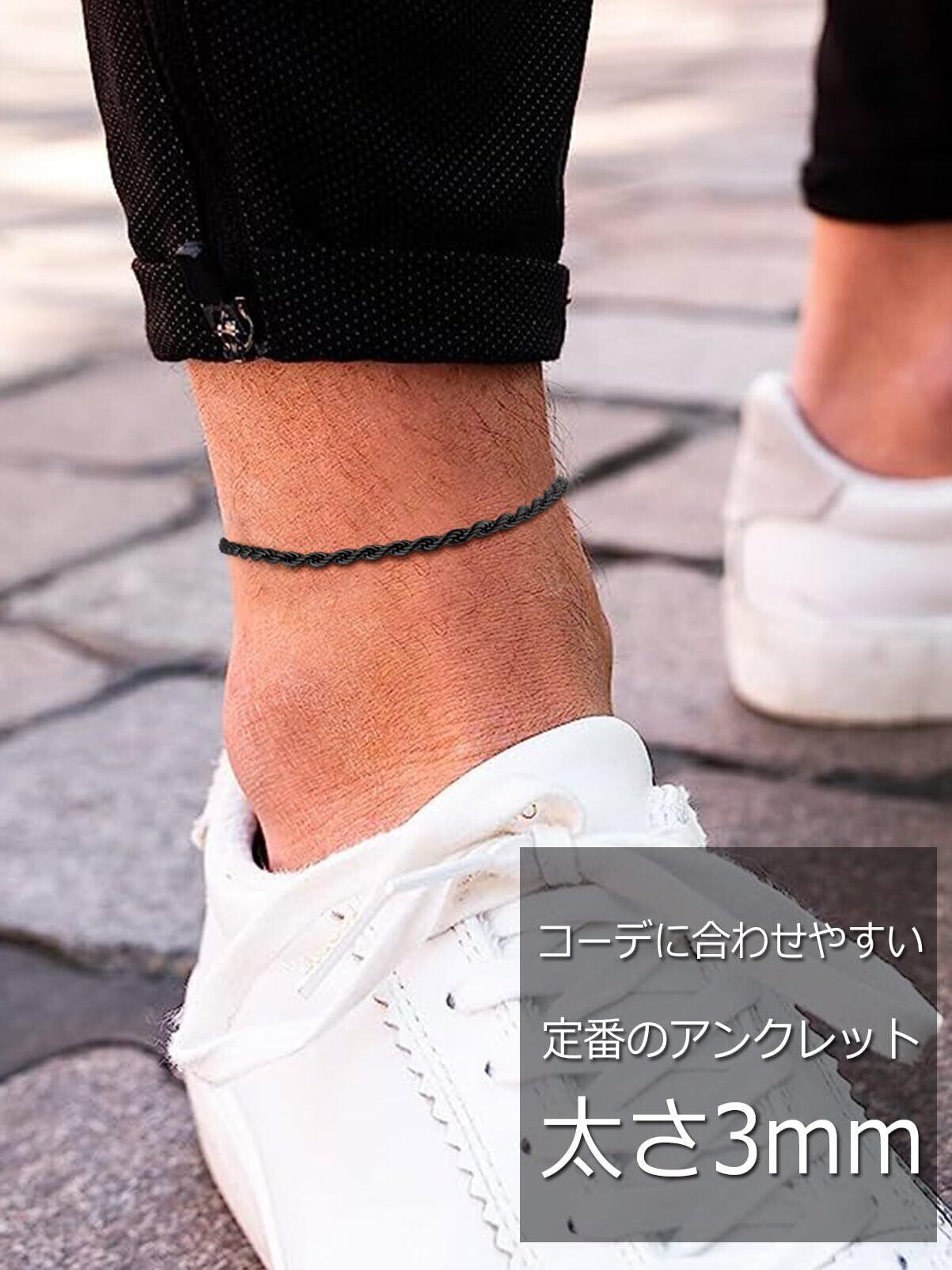ChainsPro アンクレット メンズ ステンレス 黒 ブラック つけっぱなし 22cm+5cm 幅3mm ロープチェーン レディース アクセサリー
