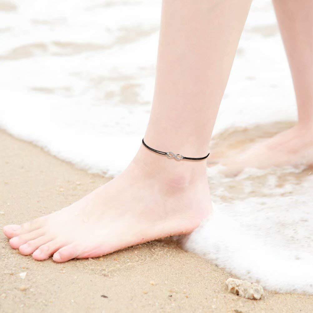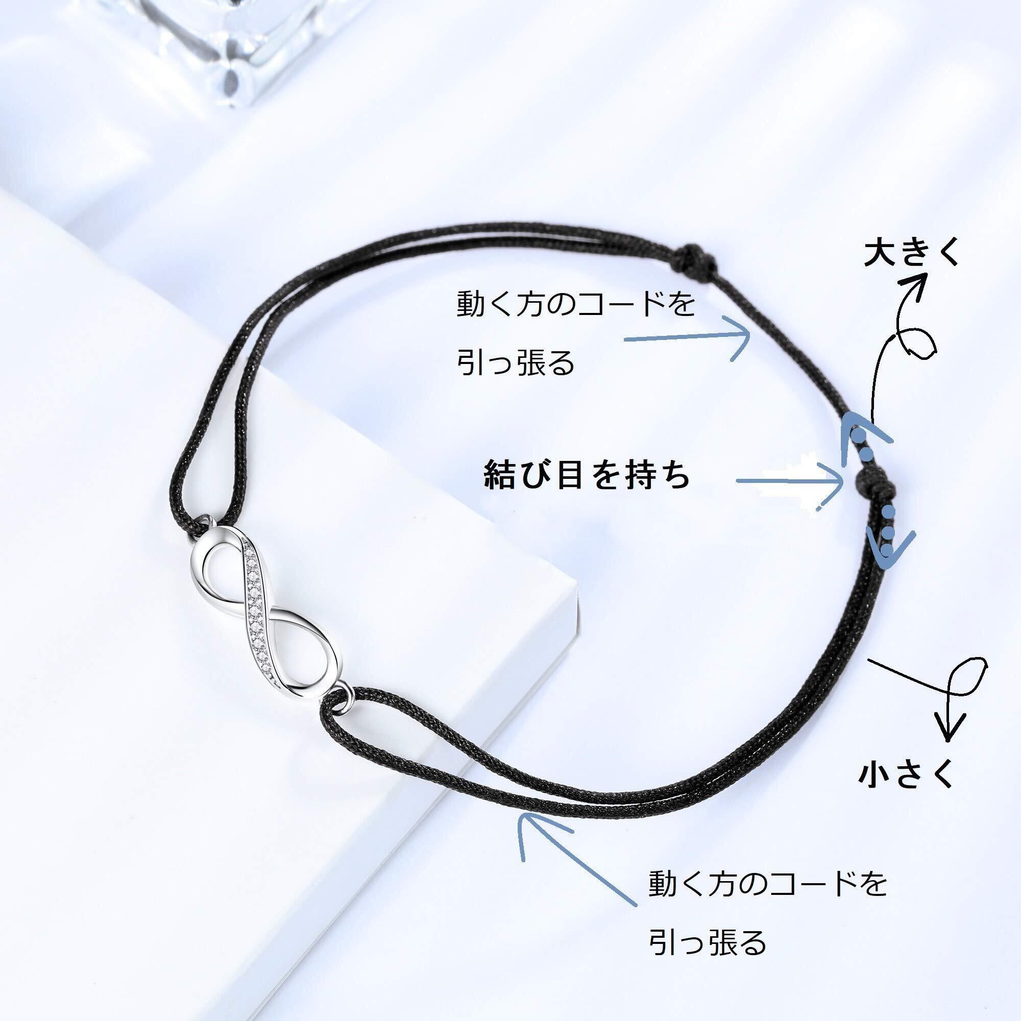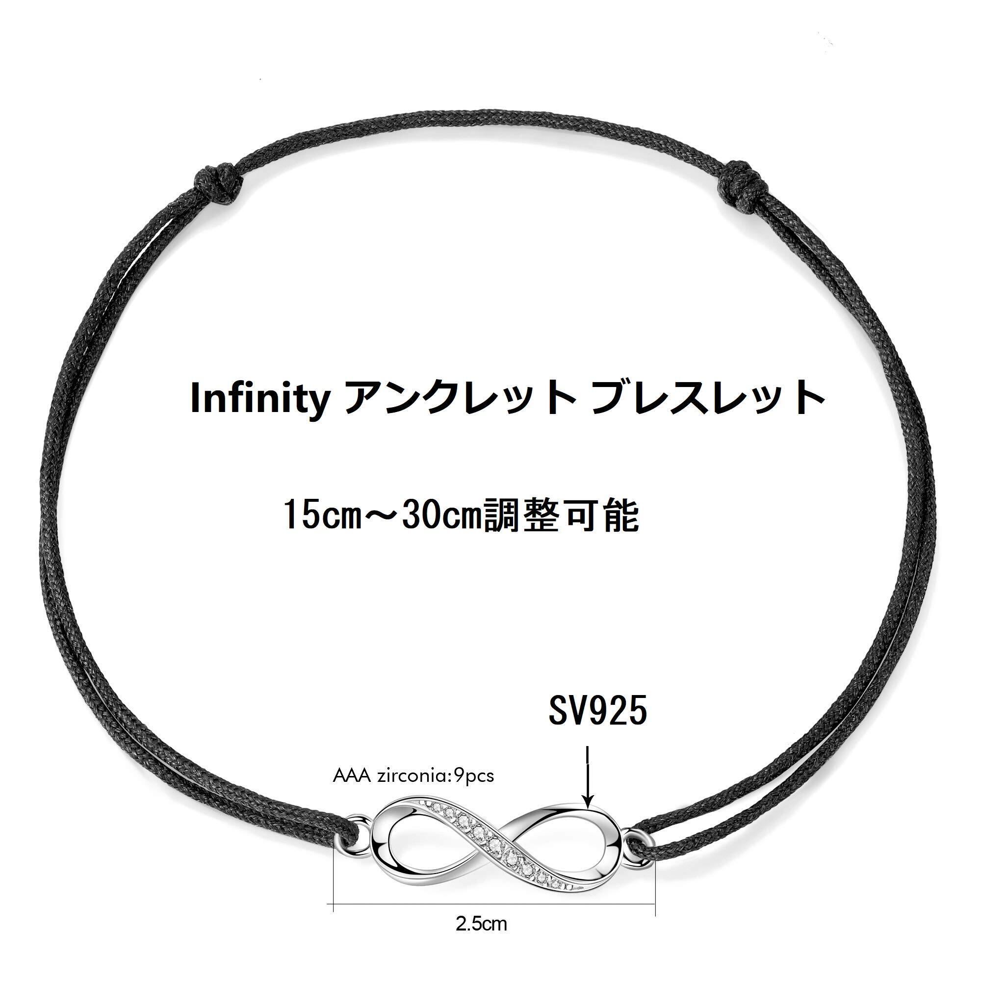 【シンプルなデザイン】インフィニティのモーチフに小ぶりのキュービックジルコニアの入ったシルバーチャームが アクセントになっております。コード仕様の男女兼用アンクレットは、シンプルでかっこよくて、トレンドに関係なく長く着用頂けます。