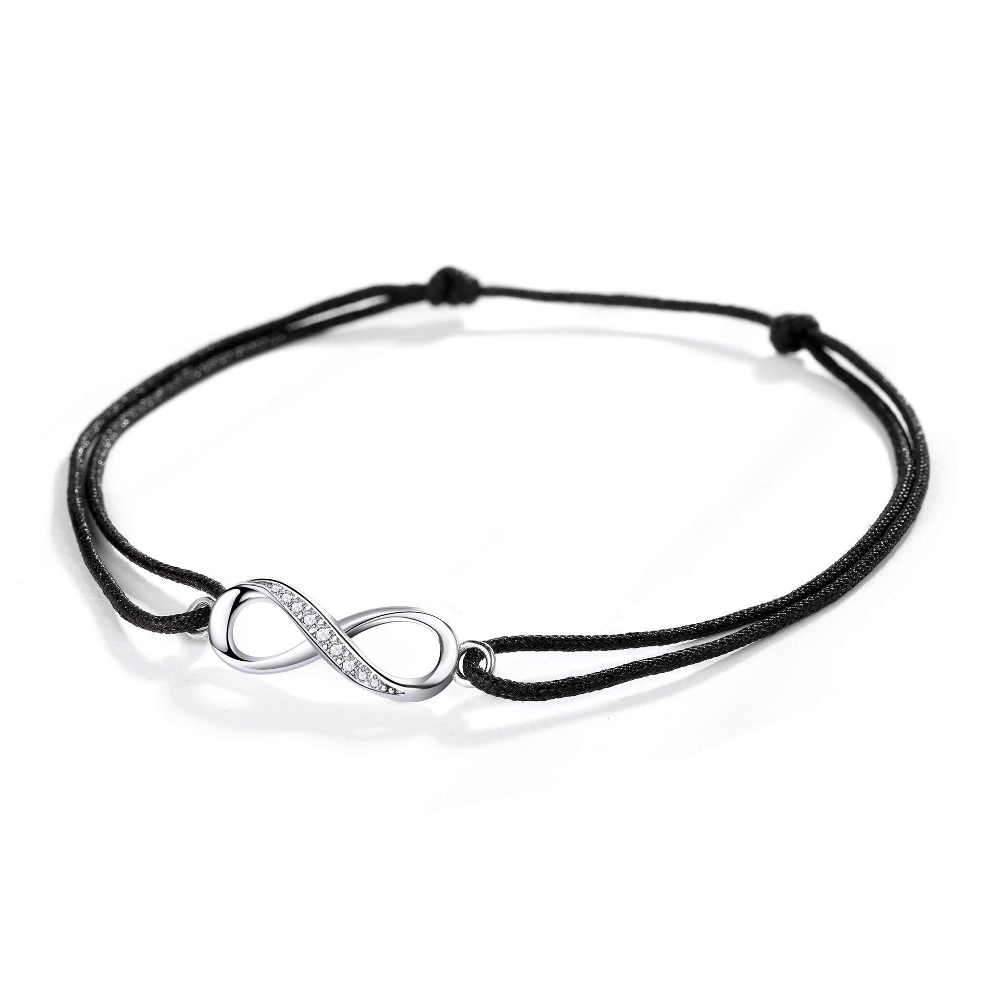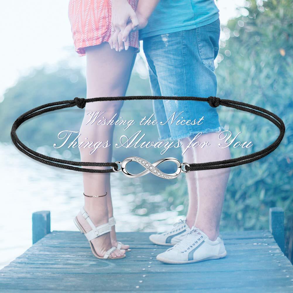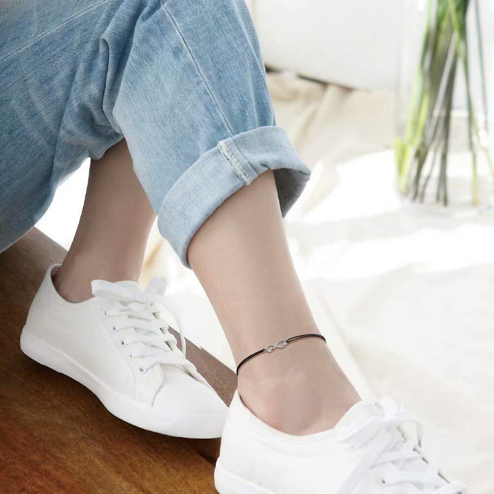 【シンプルなデザイン】インフィニティのモーチフに小ぶりのキュービックジルコニアの入ったシルバーチャームが アクセントになっております。コード仕様の男女兼用アンクレットは、シンプルでかっこよくて、トレンドに関係なく長く着用頂けます。