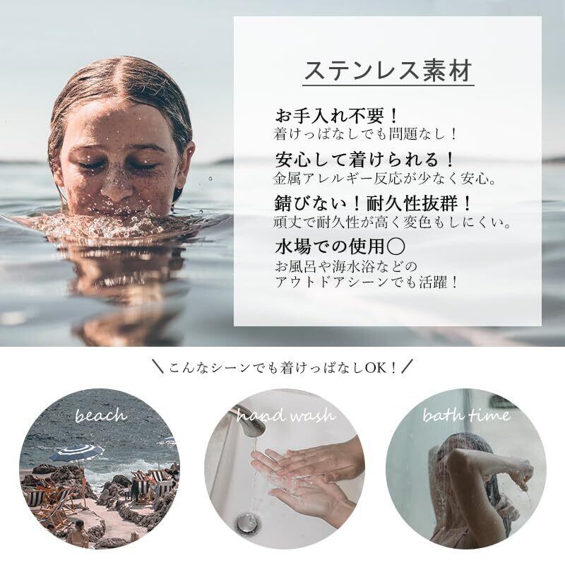 金属部分は頑丈なことで知られるステンレス素材を採用。耐久性はもちろん耐水性も高く水場での着用も可能。金属アレルギーも出にくいとされている金属です。