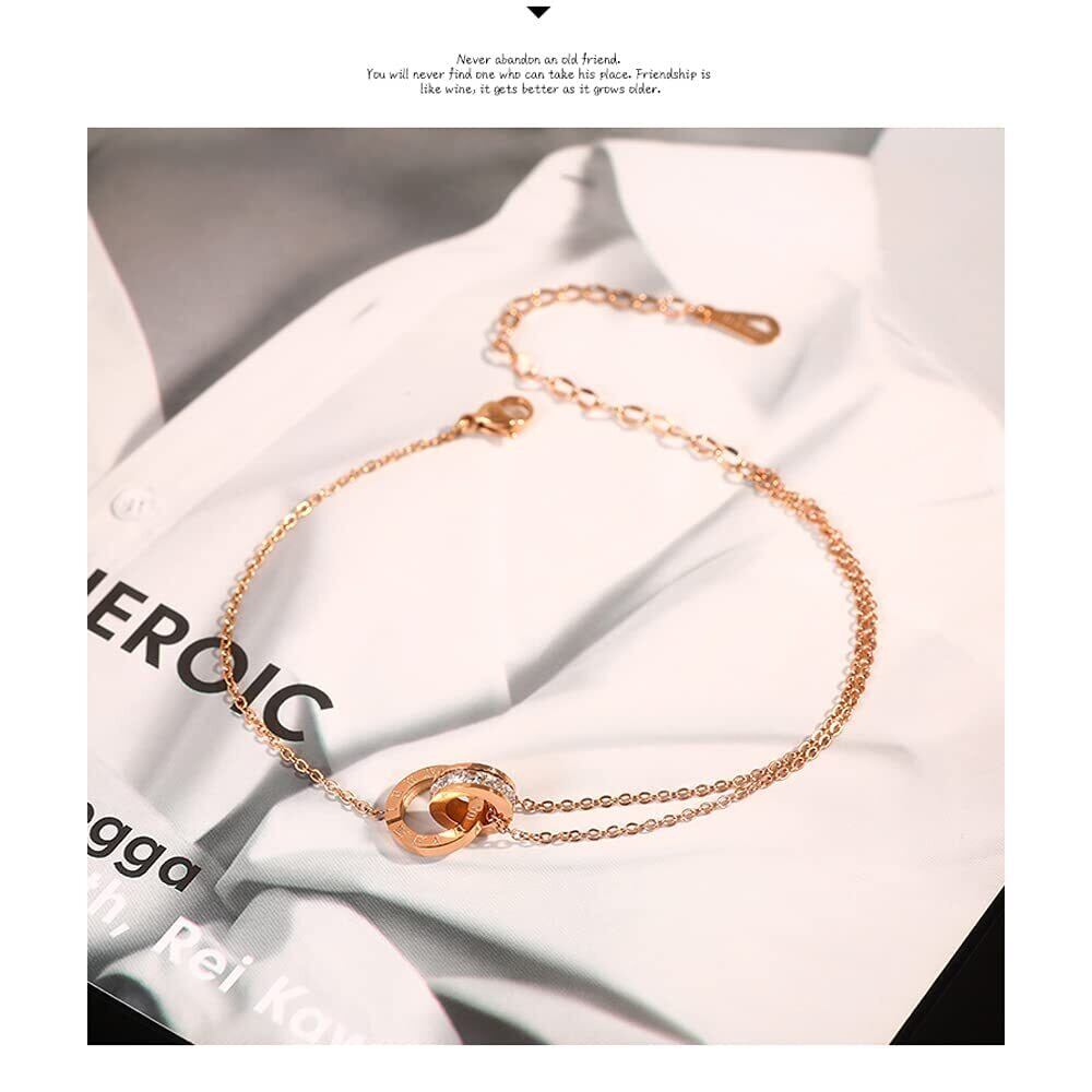 Friendship アンクレット レディース シンプル つけっぱなし 人気 足チェーン ゴールド キラキラ 足首アクセサリー ブレスレット オシャレ 誕生日 記念日 母の日 プレゼント (ローマ数字)
