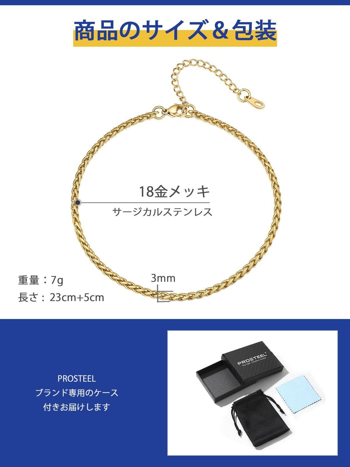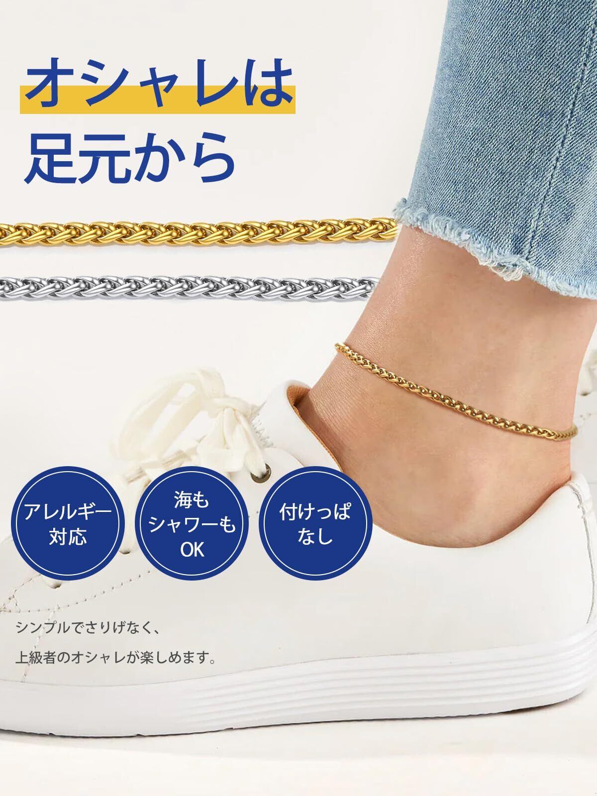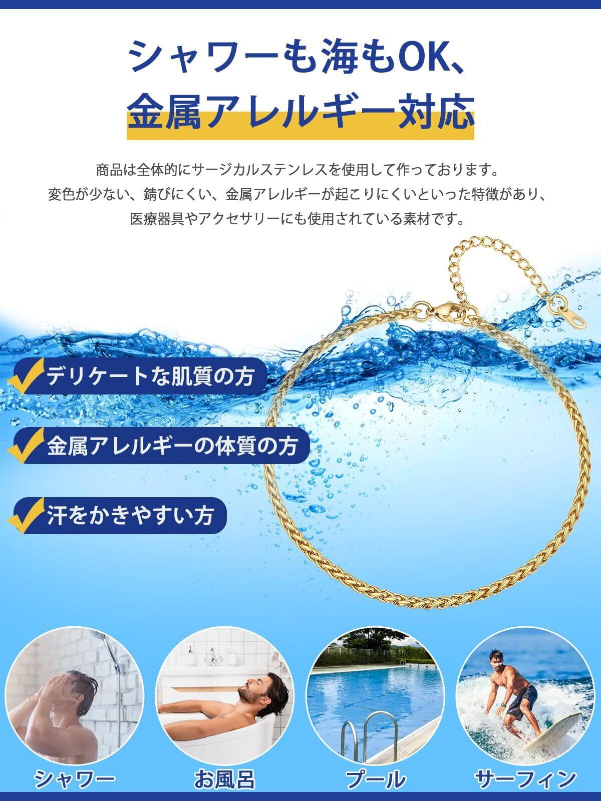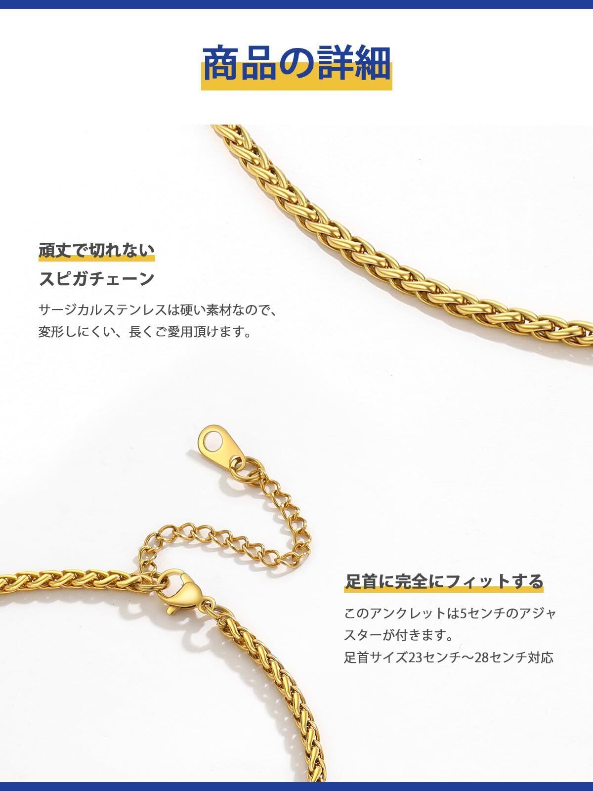 アンクレット メンズ レディース 付けっぱなし 18金仕上げ サージカルステンレス 金アレ対応 お風呂 温泉 海 夏 ファッション アクセサリー 男女兼用[スピがチェーン 幅3mm]