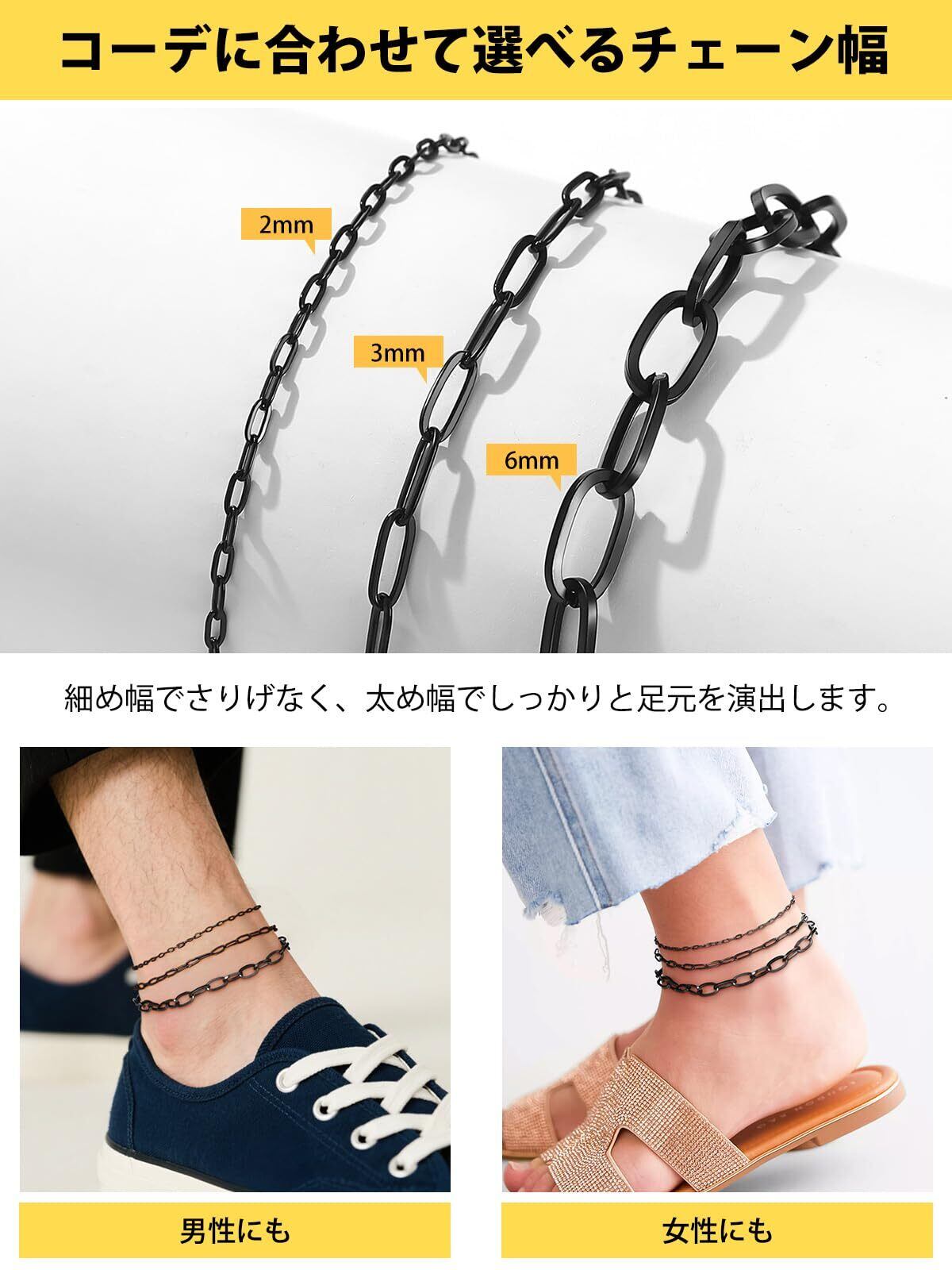 [アンクレット詳細] アンクレットの長さは22cm+アジャスター約5cmです。太さは2mm、3mm、6mmをご用意いたします。カラーはゴールド、シルバー、ブラックの3色展開します。