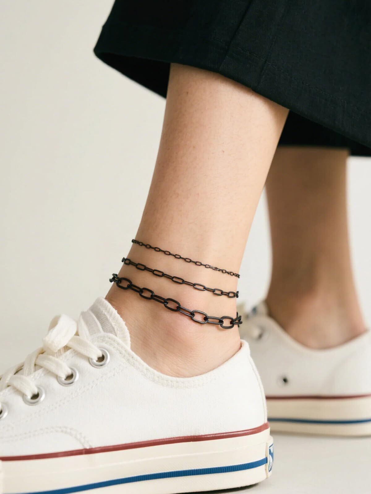 [チェーンアンクレット] 長あずきチェーンだけのシンプルさでも華やかな輝きが自慢のアンクレットです。シンプルでありながら、その存在感はカジュアルな装いからフォーマルなシーンまで幅広く対応します。