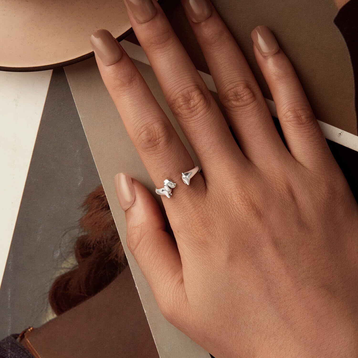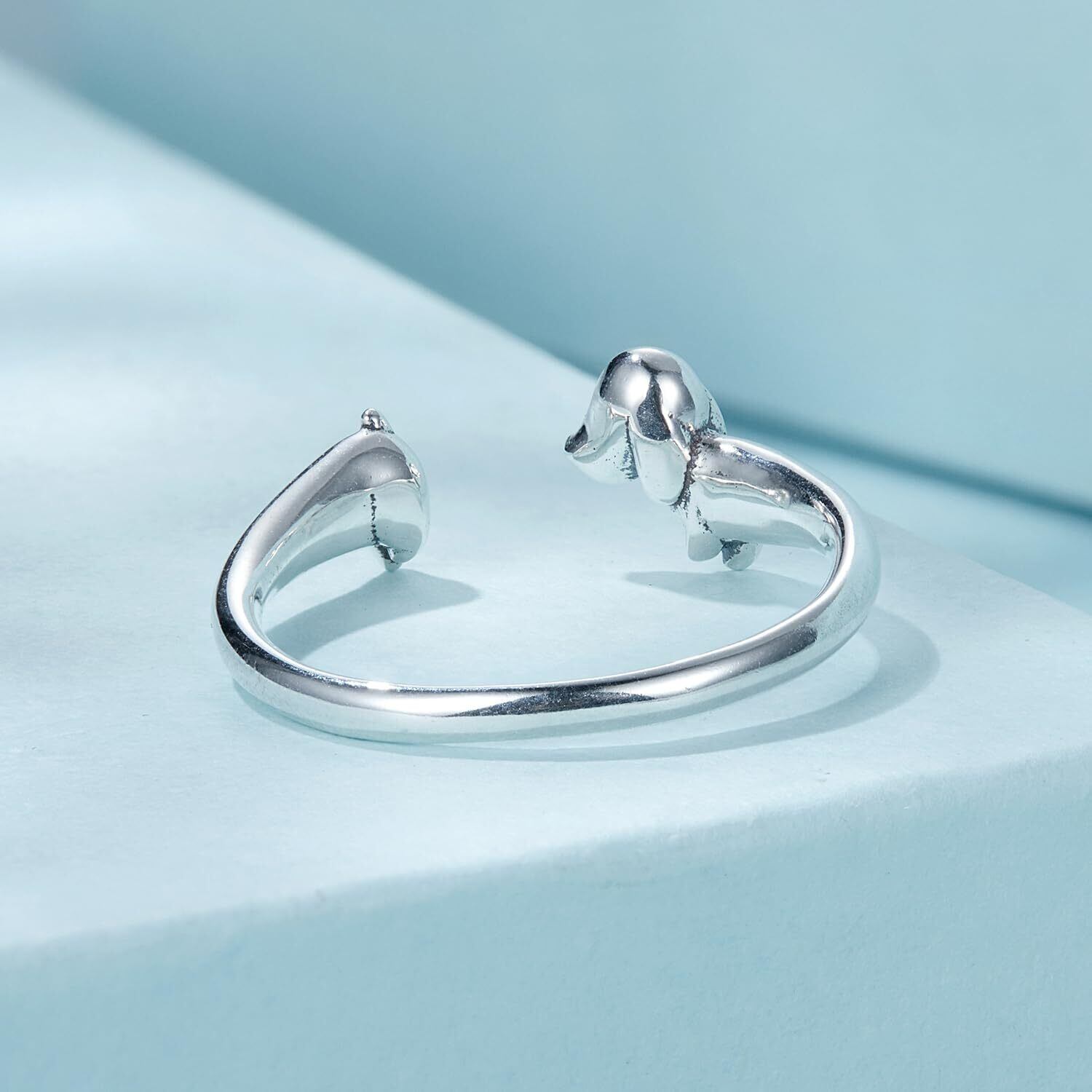 [Rockyu] リング レディース 925純銀 ダックスフンド 開口リング 調節可能 オキシダイズドシルバー 動物モチーフ 指輪 母の日 ギフト