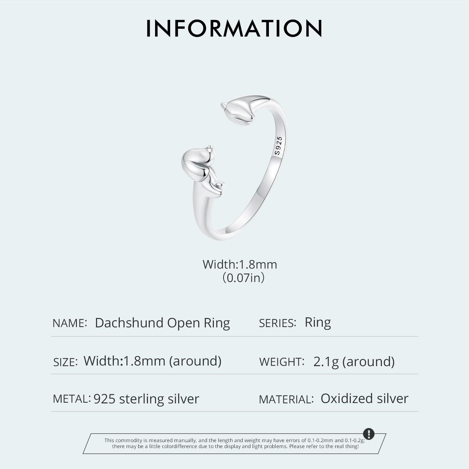 【Rockyu リング】925純銀製 ダックスフンドリング レディース 調節可能なデザインで、繊細かつシンプルな装いに最適です。素材: 925純銀、オキシダイズドシルバー加工 幅:1.8mm 重さ:約2.1g 金属アレルギー対応。