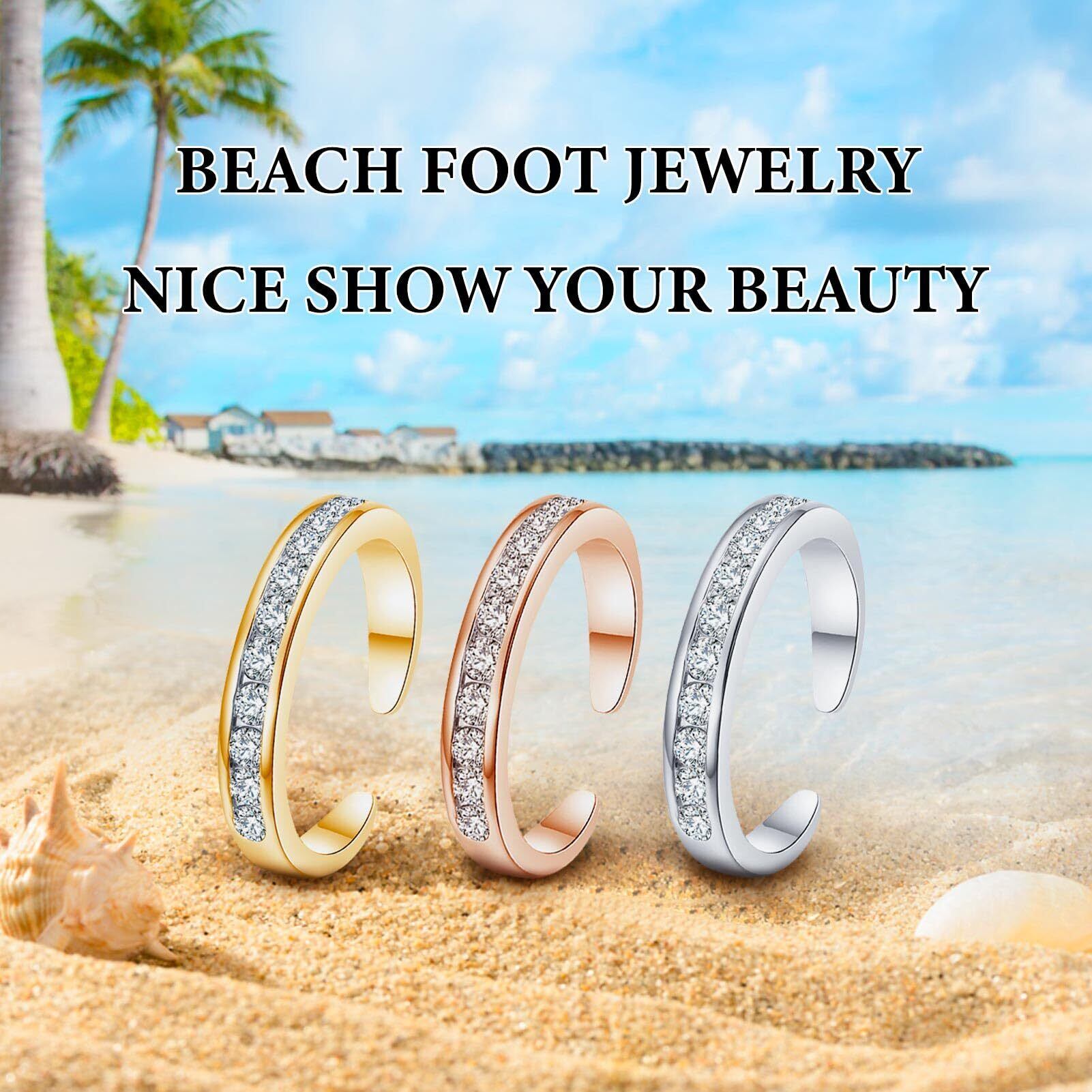 【2022最新】[LucBuy] 3個の女性用トゥリング 調節可能なキュービックジルコニアトゥリングセット シルバー/ローズゴールド/ゴールドリング夏のビーチフットジュエリー、低刺激性オープントゥリング | 無意味ステッカー
