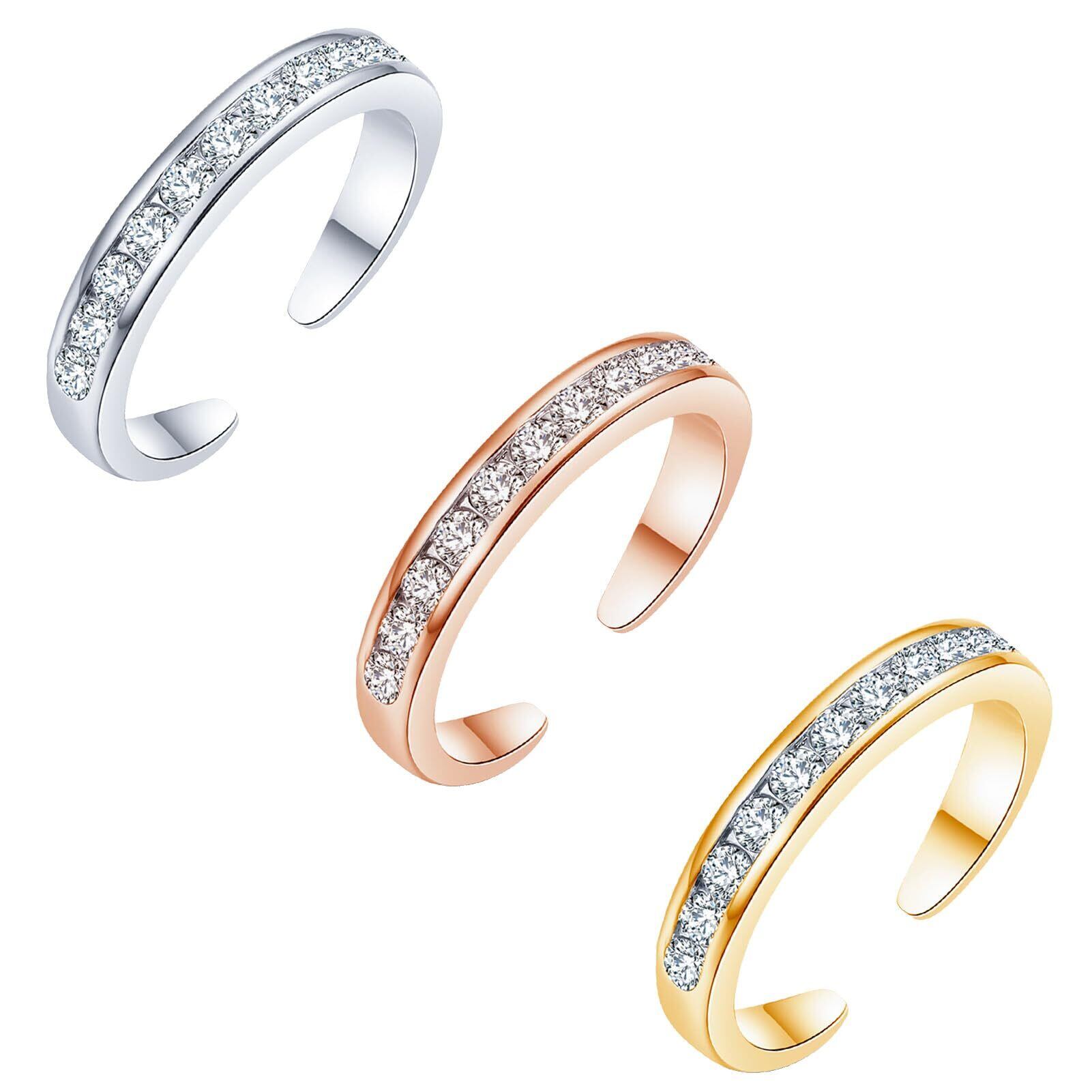 [LucBuy] 3個の女性用トゥリング 調節可能なキュービックジルコニアトゥリングセット シルバー/ローズゴールド/ゴールドリング夏のビーチフットジュエリー、低刺激性オープントゥリング