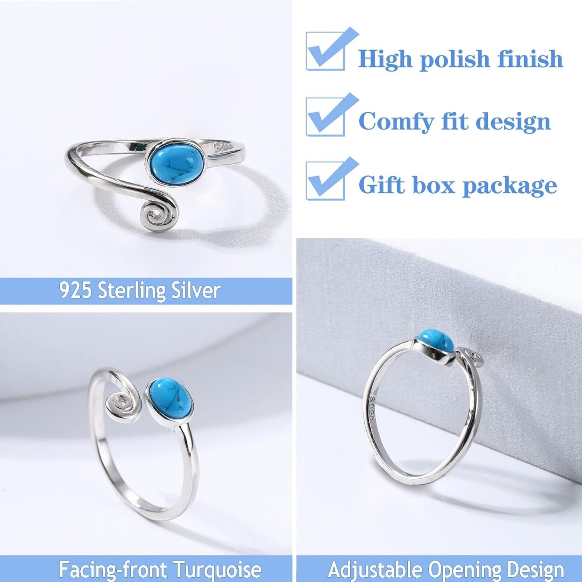 [LOYALLOOK] トーリング セット 3点 シルバー 925 オープン リング 調節可能 トーリング 女性 ターコイズ ムーンストーン 夏 足ジュエリー