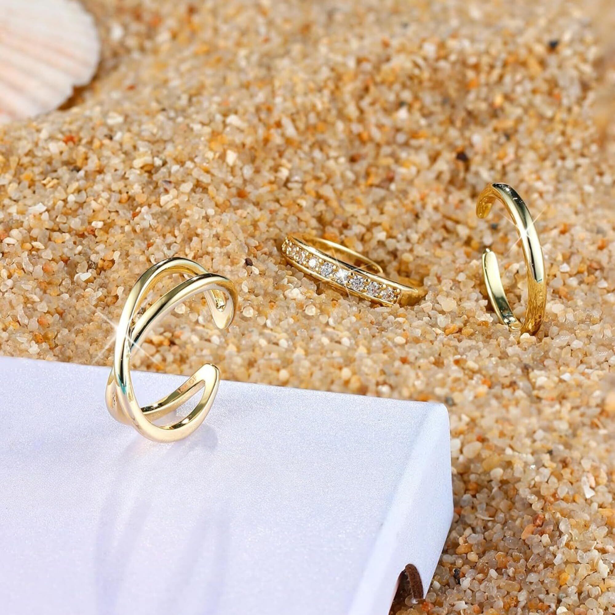 [Jstyle] 14K トゥリング レディース ゴールド セット 調整可能 リング 女性 足 指輪 夏 シンプル 日常 足 アクセサリー ジュエリー