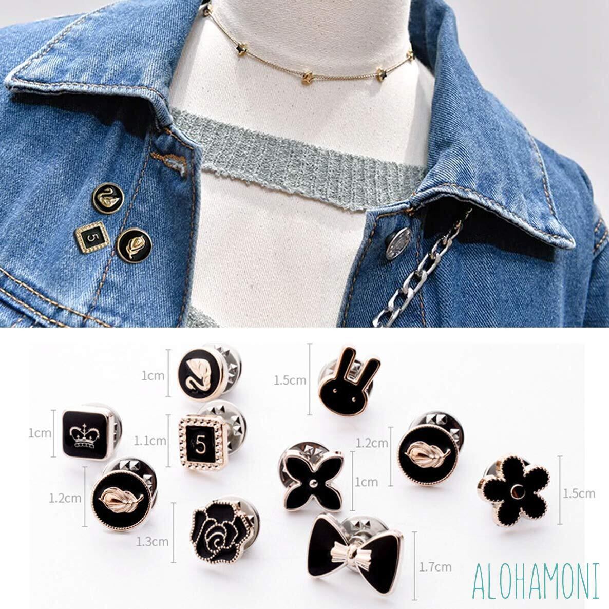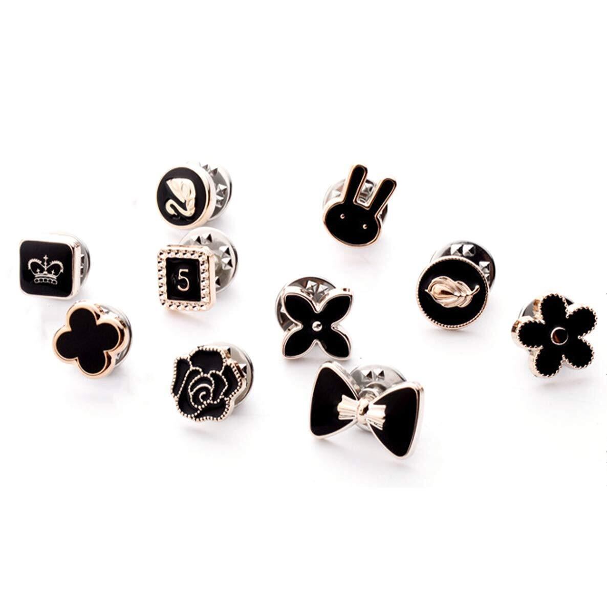 ALOHAMONI (アロハモニ) ブローチ タックピン 10個 セット ピンブローチ ピンバッジ ラペルピン ネクタイピン タイタック ハットピン ボタン 縫製不要 レディース メンズ キッズ ユニセックス (ブラック)
