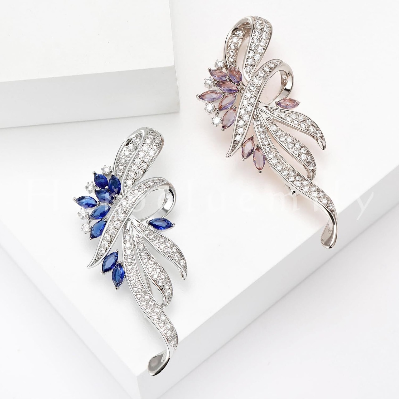[Herbeluemily] ブローチ コサージュ クリスタル フォーマル おしゃれ 結婚式 スーツ リボン ビジュー