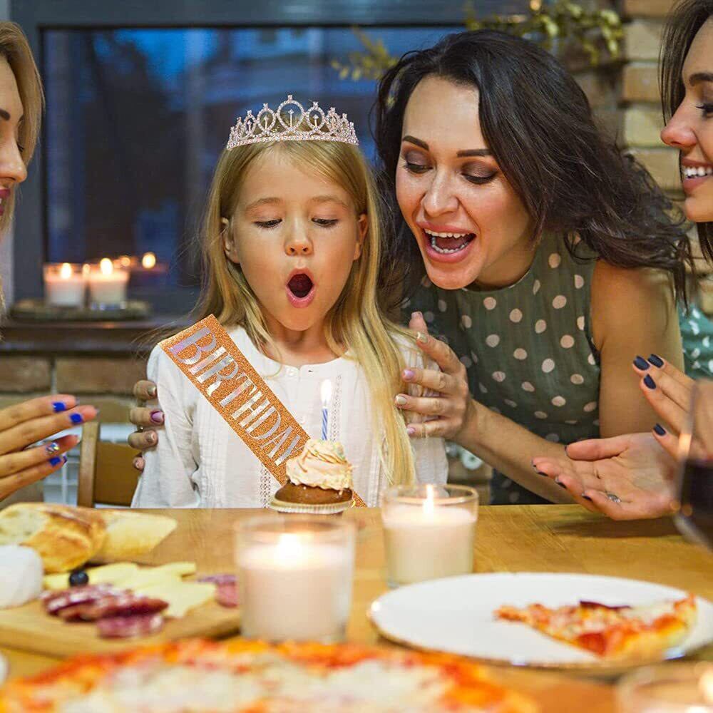LIKENNY 誕生日 王冠 たすき ブローチ バースデー ケーキ 飾り キラキラ 王冠 パーティーグッズ 記念日 お祝い小道具 子供 女の子 女性 カチューシャ