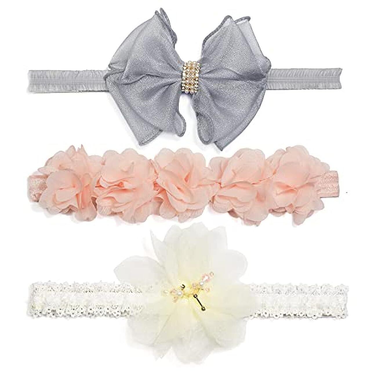 BIANHUAN ヘアバンド ベビー 赤ちゃん ヘアアクセサリー カチューシャ 3点セット ティアラ フラワー ヘア