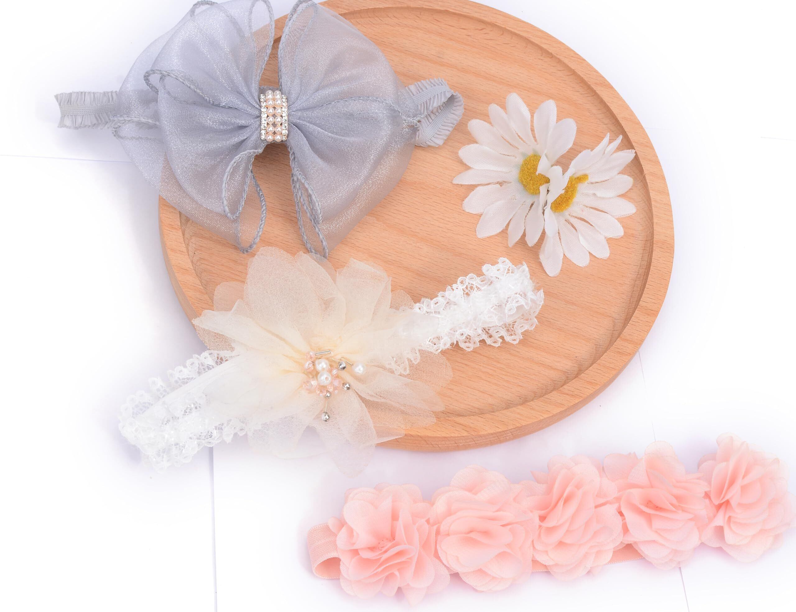 新生児から使用できる可愛いベビー用ヘアバンド! 髪の毛の少ない赤ちゃんでも、これをつけるだけでキュートな女の子に変身